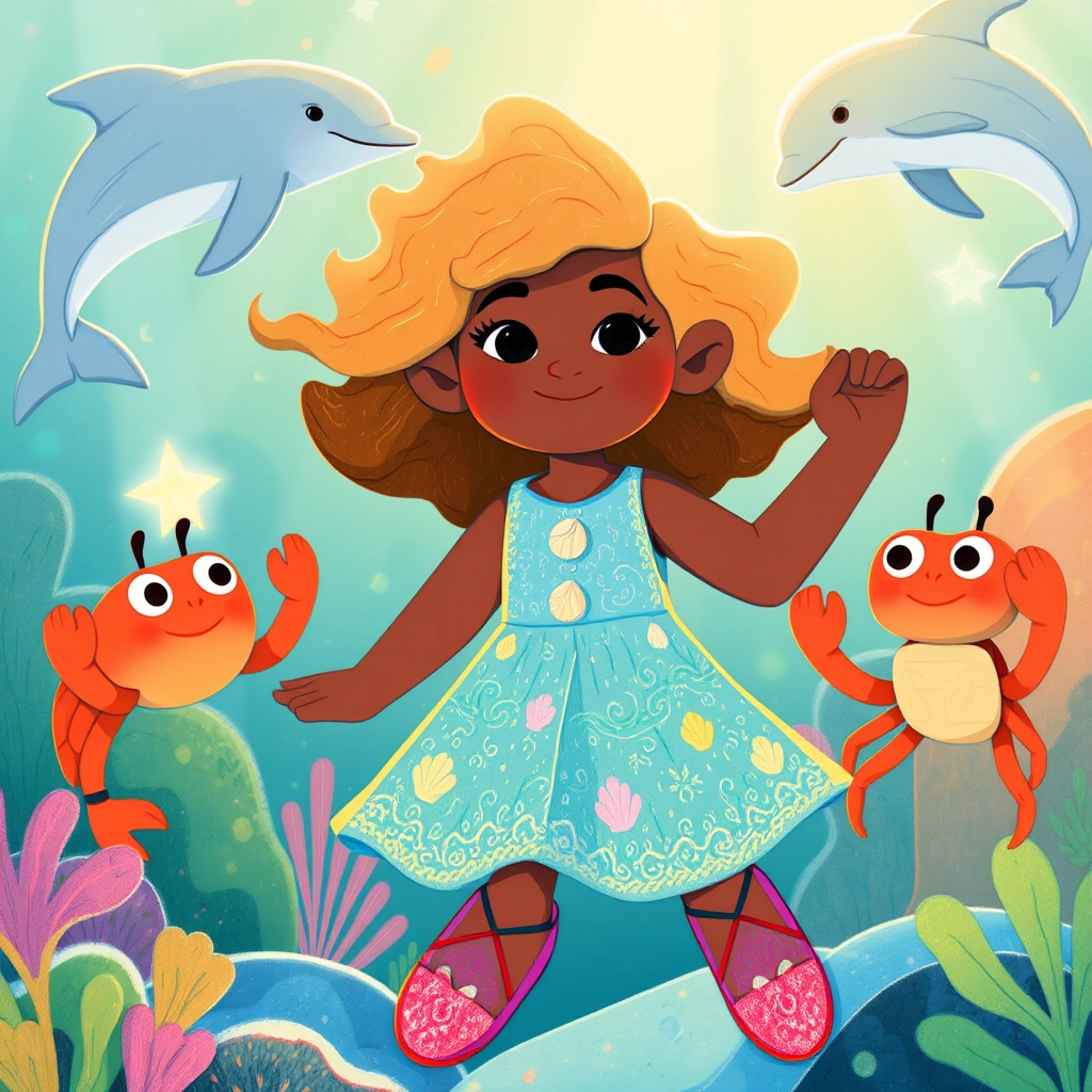 The dolphins told her, 'You’ve made the sea even brighter!' The crabs clicked, 'Thank you for sharing your magic!' [Kaylani](WGLLLM2H) felt her heart glow like the shells.