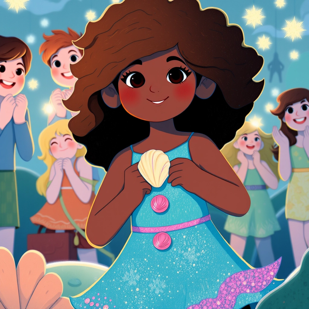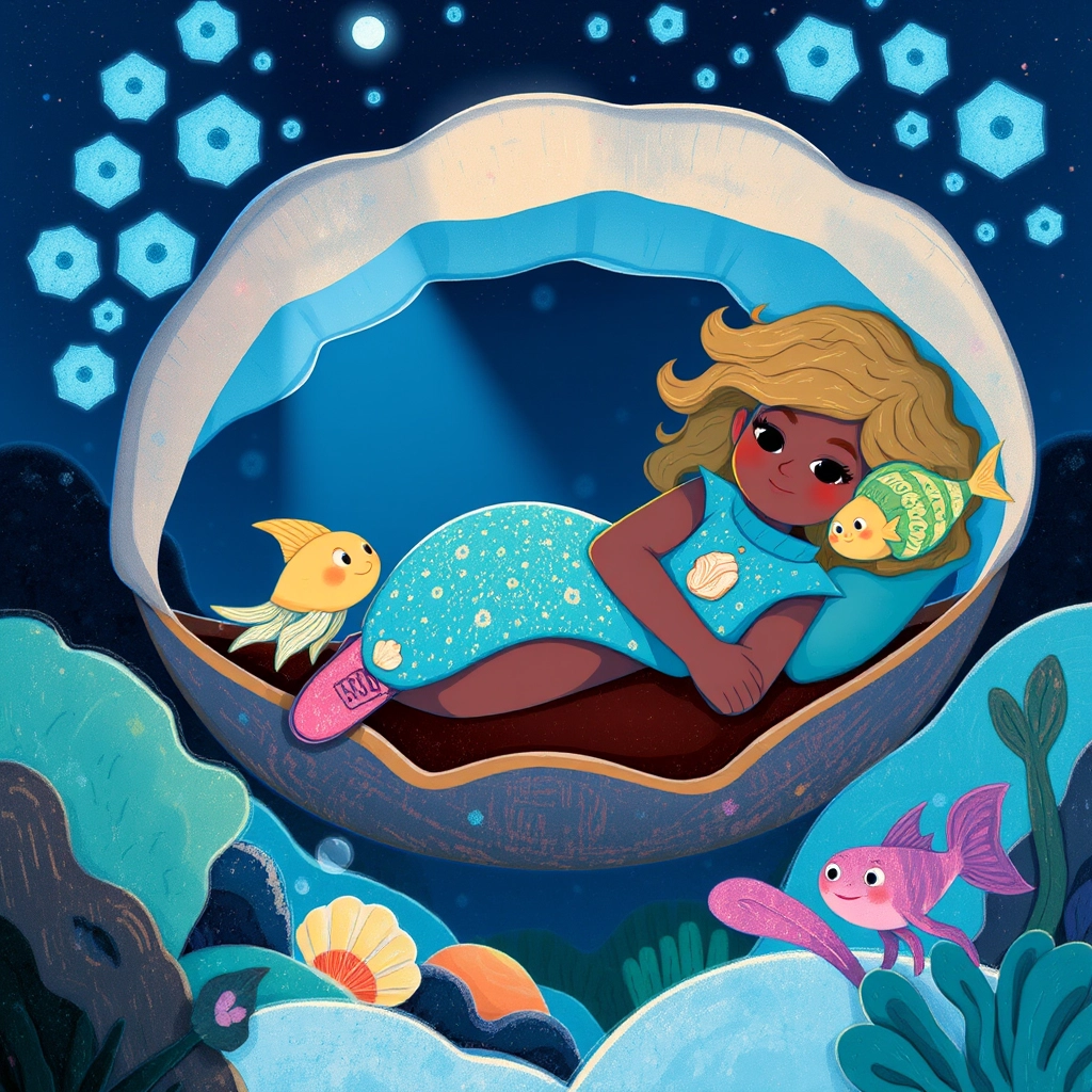 That night, as she snuggled into her seashell bed, [Kaylani](WGLLLM2H) smiled and whispered, 'Sharing makes the sea more sparkly.'