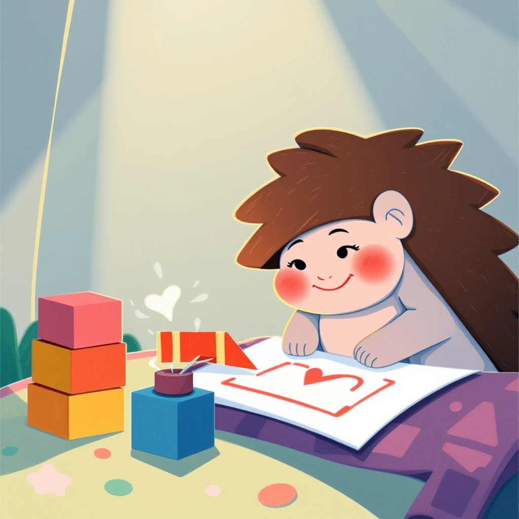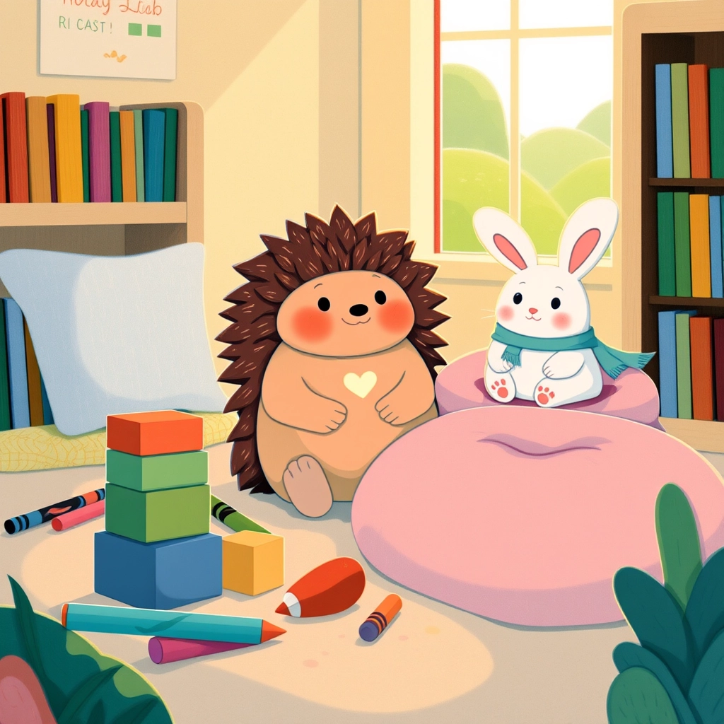 [Kimo](W95YDZY3) the Hedgehog was having a tough day. His block tower tumbled down. His crayon broke in half. And then—someone sat in his favorite spot!