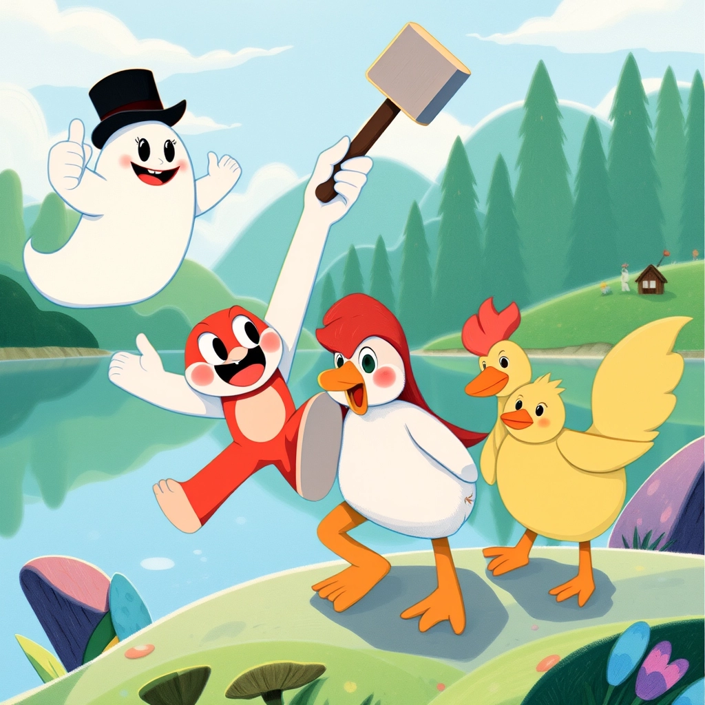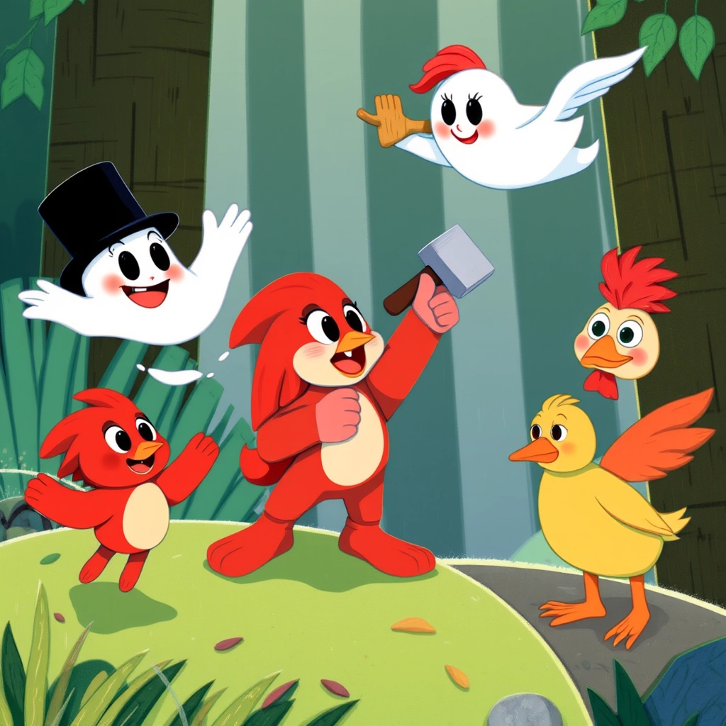 'Thank you, friends, for helping me!' [Doosh](PDDCNYH9) said, proudly holding his hammer. 'Now I can build my mansion!' [Knuckles](JBB26P76) puffed up, smiling. 'Remember to ask for help when you need it!' [Rodney](K2VZ75LR) clucked in agreement, 'Bok bok, begerk!'