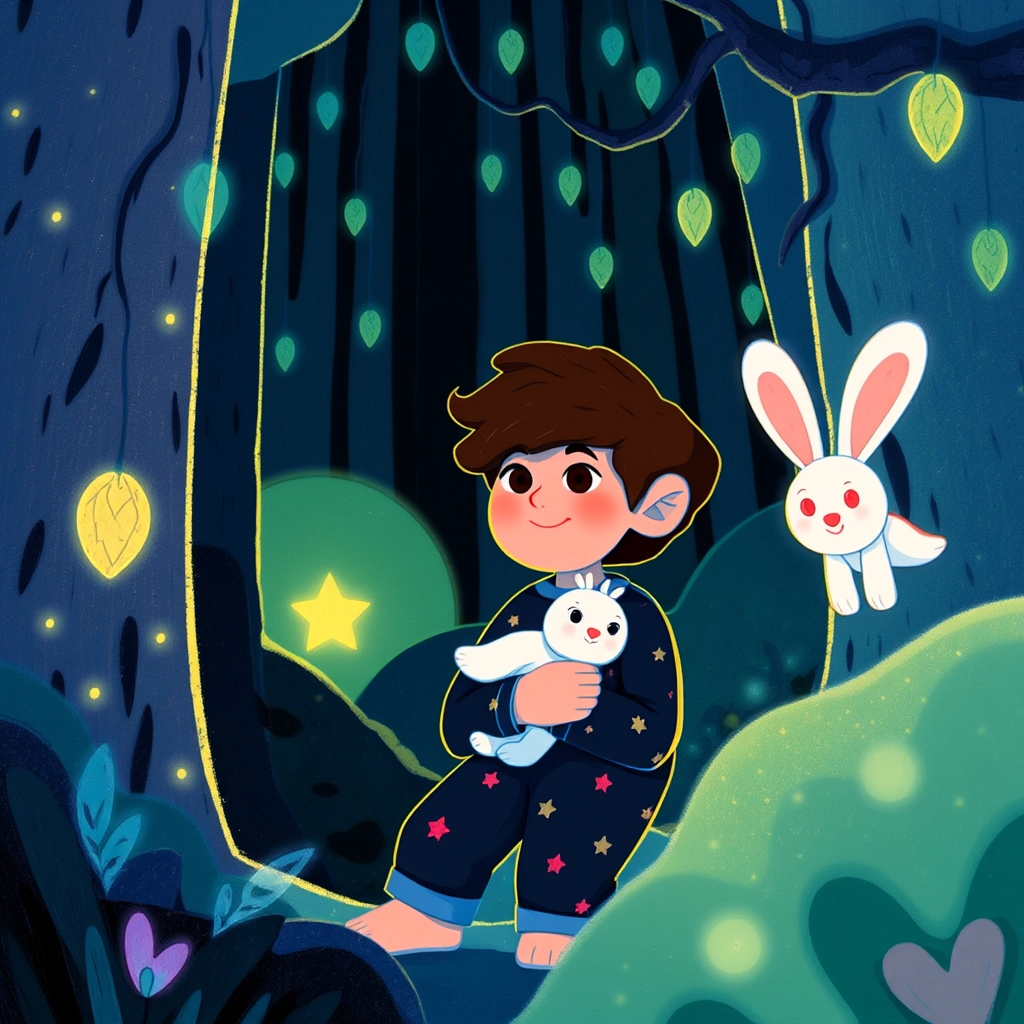 One evening, as [Leo](VCZLQJDS) clutched his stuffed bunny named [Thumper](YMRJ4PQ6), he whispered, "I wish I weren’t so scared of the dark." Suddenly, [Thumper](YMRJ4PQ6)'s button eyes glowed, and he hopped to life!