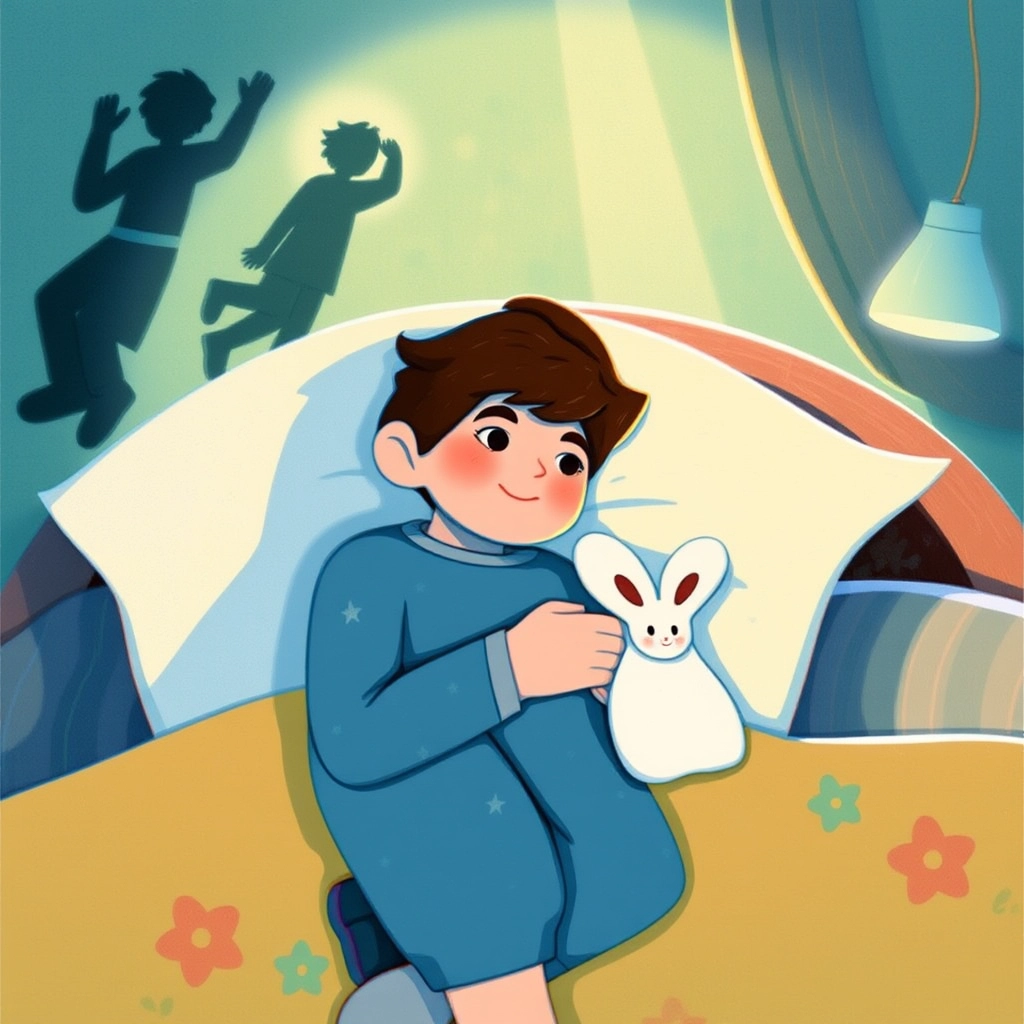 Back in his room, [Leo](VCZLQJDS) climbed into bed. The shadows on his walls now felt like old friends who had come to visit. "Goodnight, shadows," he whispered with a smile.