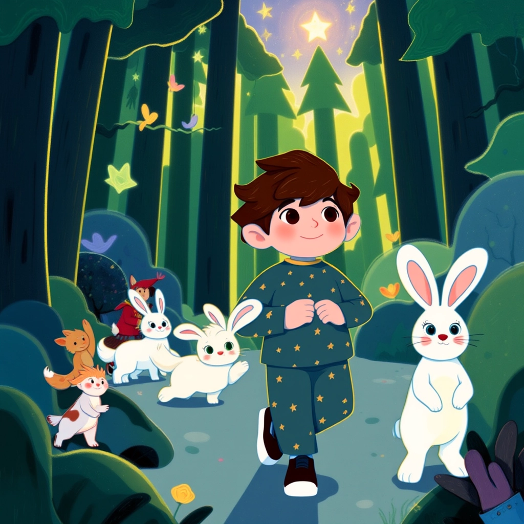 The night felt magical, and [Leo](VCZLQJDS) no longer saw shadows as scary. They became friends, dancing around him like a happy parade as they left the glowing forest.