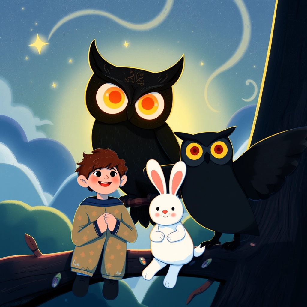 A giant shadow owl swooped down and said, "[Leo](VCZLQJDS), seeing shadows just means light is always near! Every shadow has a story." [Leo](VCZLQJDS) smiled at the owl’s wise voice.