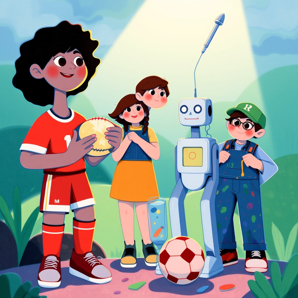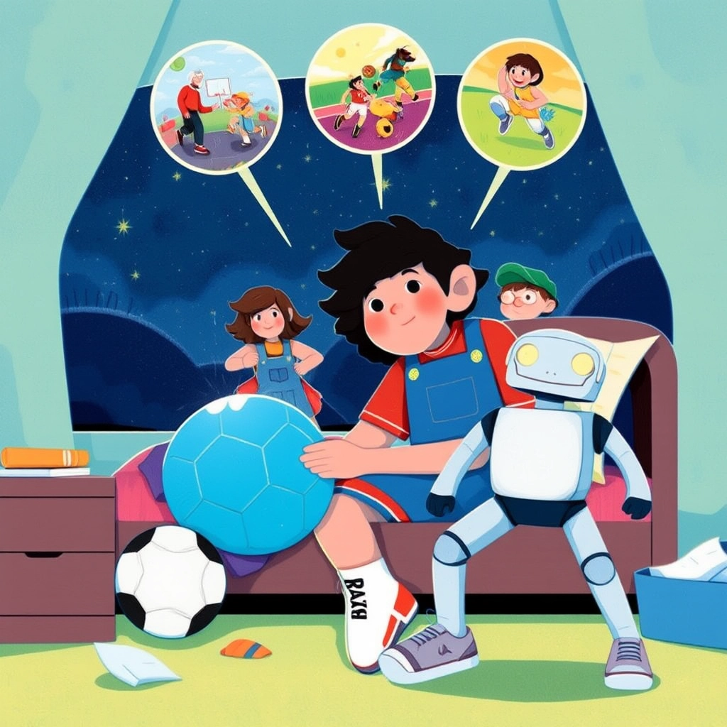 That night, [Leo](5C4CSLJ4) fell asleep dreaming of more football adventures with [Mia](KT376X9J), [Toby](Z2M796C7), and [Robo-Kicks](54DTNZVV), ready to explore a whole new game tomorrow!