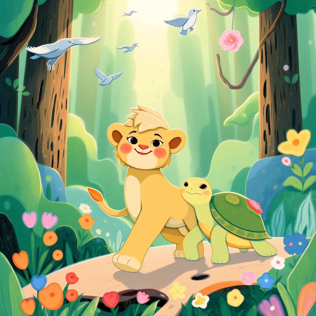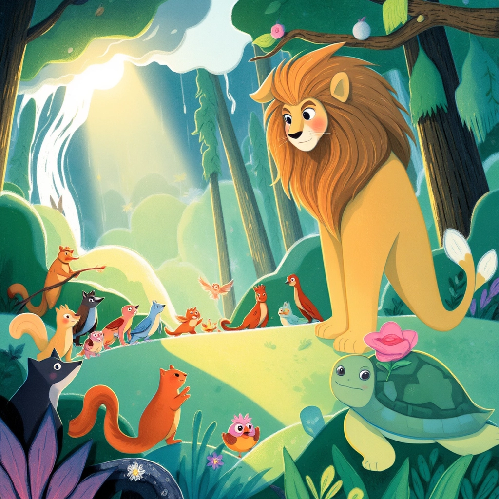In the heart of a magical forest lived a little lion named [Leo](QKLRC22D). He was fluffy, brave, and kind, but he had a big secret: He was afraid of his own roar!