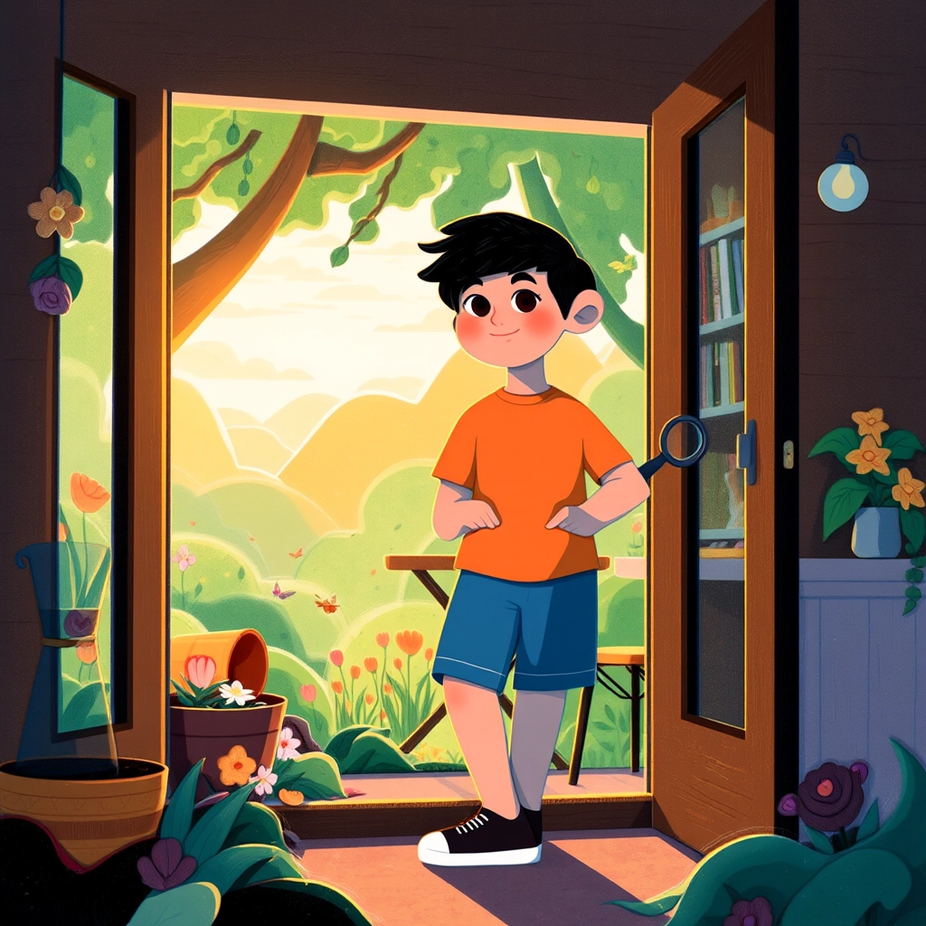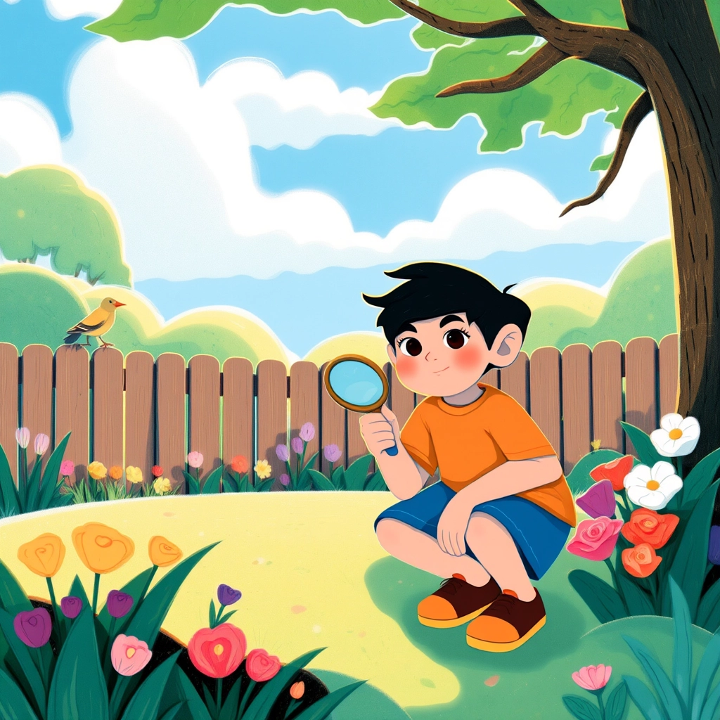 It was a sunny morning, and 5-year-old [Leonardo](5G67YDG2) stepped out into the backyard with his magnifying glass. Today, he felt like a little explorer!