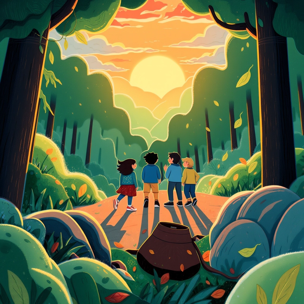 [Benny](PZHQPF9L) giggled, 'What if we turn each worry into a leaf and let the breeze carry them away?' [Ellie](GSWB4KB6) looked intrigued and said, 'Let’s try that!'