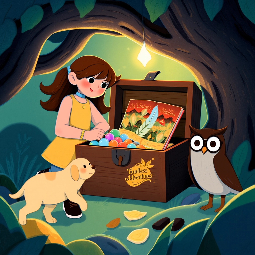 The chest was full of magical objects like glowing marbles, a feather that made you giggle, and a book of endless adventures!