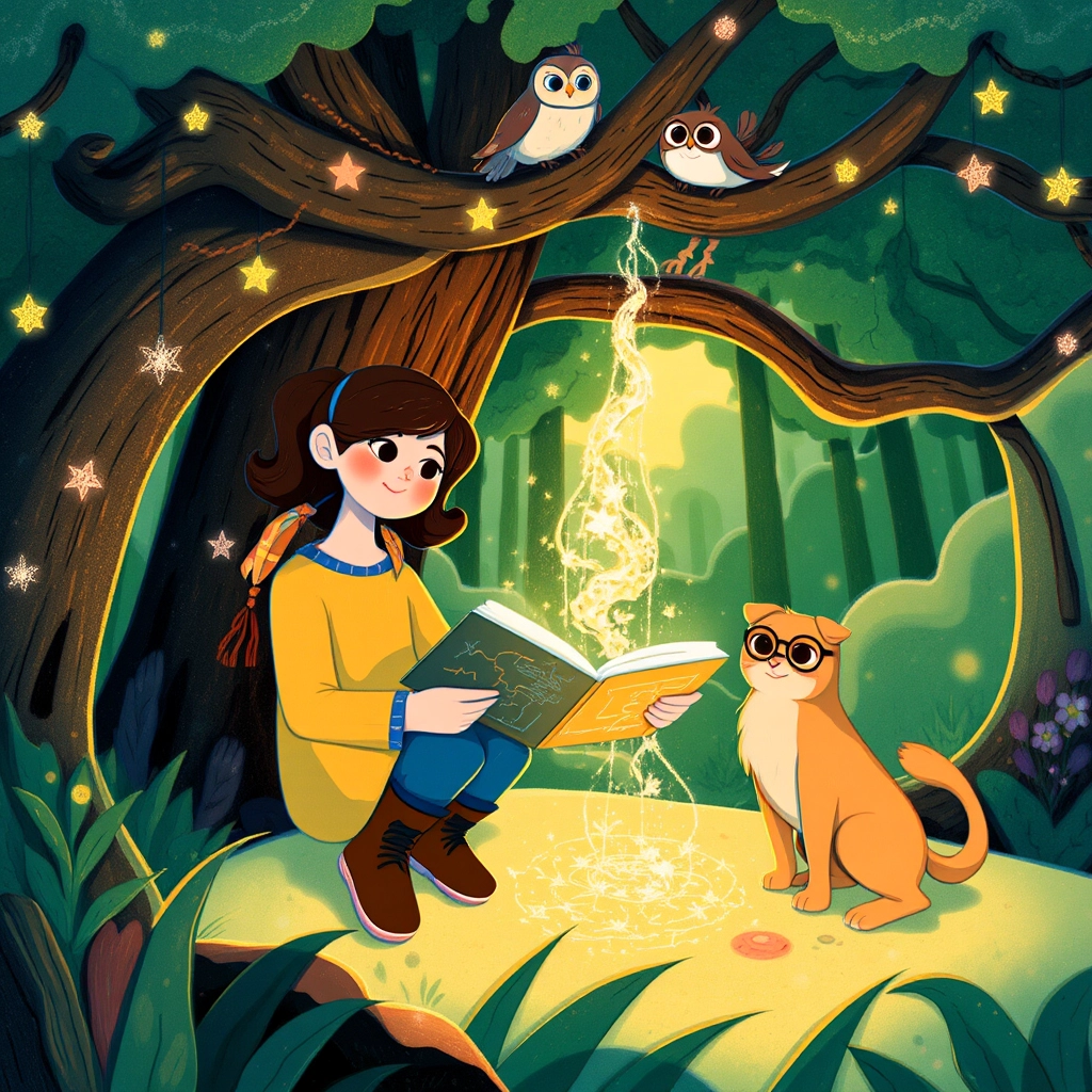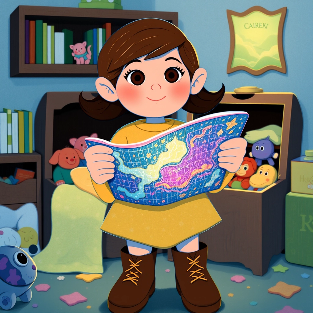 One morning, she found a sparkling blue map hidden in her toy chest. The map showed a magical forest filled with surprises.