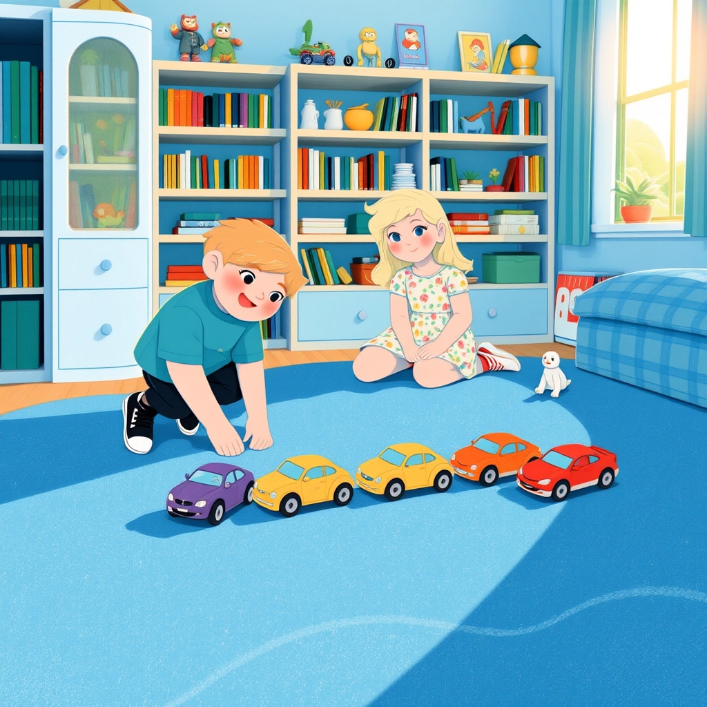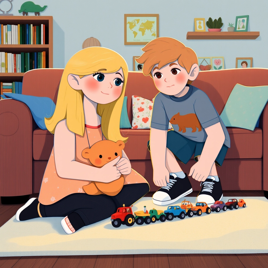 [Max](C26J3NG2) didn’t always like to play the same games as [Lily](5F3XJ7T5). He loved to line up his toy cars in a perfect row, and to [Lily](5F3XJ7T5), it looked like a big, colorful parade. Sometimes, she wanted to play with the cars too, but [Max](C26J3NG2) didn’t like it when they were moved.