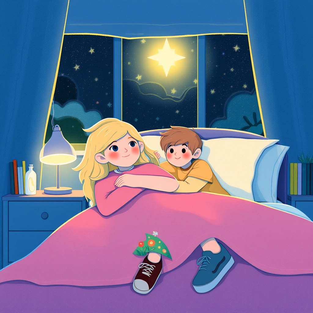At night, before bed, [Lily](5F3XJ7T5) and [Max](C26J3NG2) had a special routine. They would each pick a book, and Mom or Dad would read them together. [Max](C26J3NG2) liked the same story every night, but [Lily](5F3XJ7T5) didn’t mind. She knew it made [Max](C26J3NG2) happy, and that made her happy too.