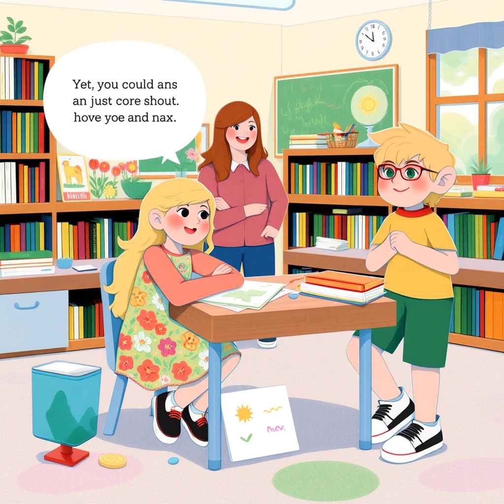 One day at school, [Lily](5F3XJ7T5)’s friend asked, 'Why doesn’t your brother talk like other kids?' [Lily](5F3XJ7T5) thought for a moment and then said, '[Max](C26J3NG2) talks in a different way. Sometimes he uses pictures, and sometimes he shows how he feels with his hands or his smile.'