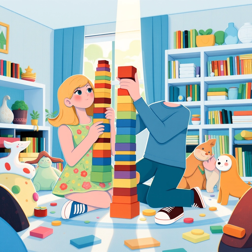 [Lily](5F3XJ7T5) knew that [Max](C26J3NG2) was good at many things. He was really smart with numbers and could build amazing towers with his blocks. [Lily](5F3XJ7T5) loved watching him build, and sometimes, [Max](C26J3NG2) would let her add the very last block.