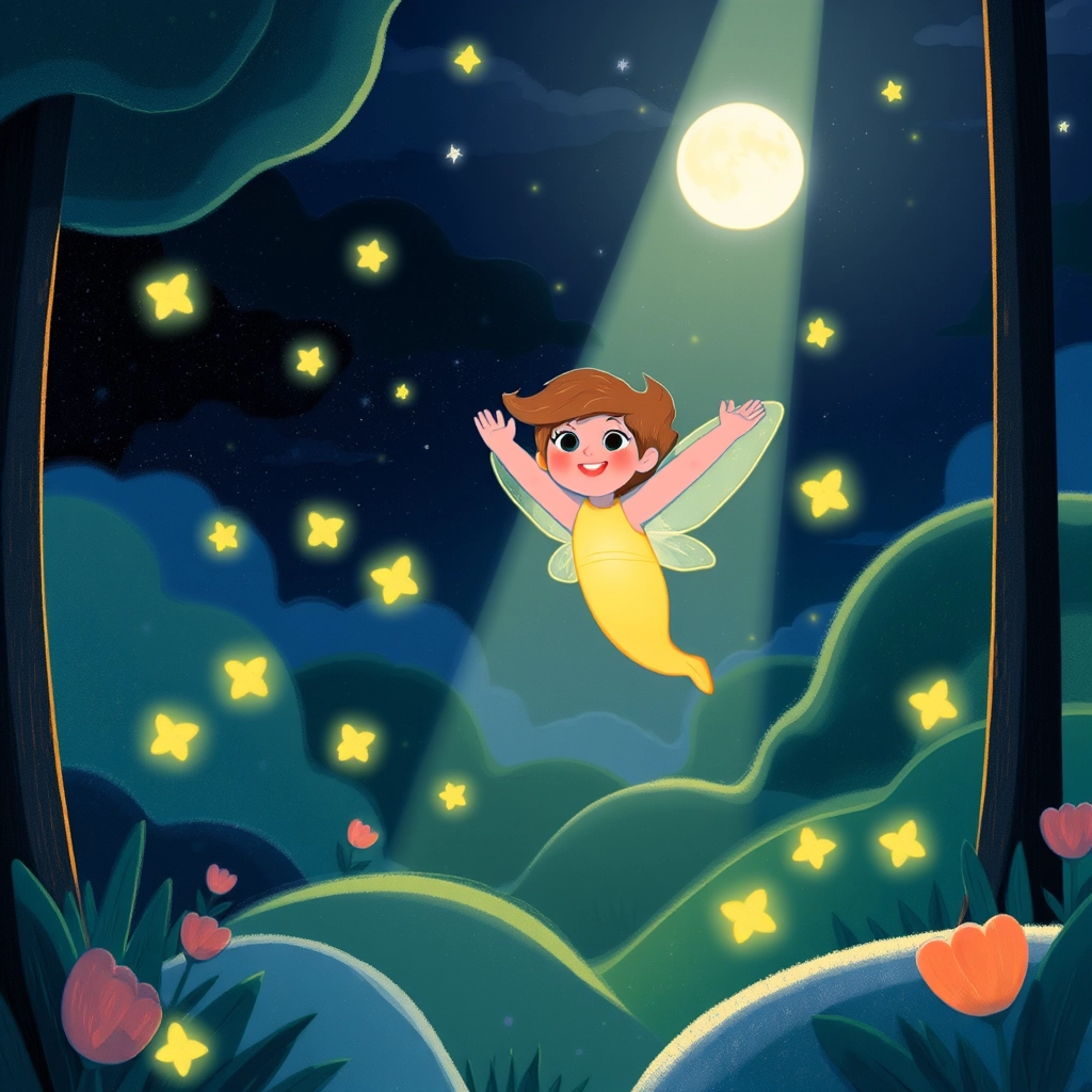 From that night onward, [Lily](5LVPHH3R) joined the other fireflies in the moonlight, glowing brightly and dancing happily. She was no longer afraid of the dark!