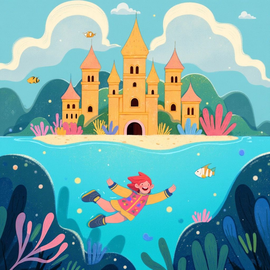 With each stroke, [Linh](Y9N26MN5) swam deeper into the ocean. The sunlight danced above her, sending flickering patterns down into the abyss. Soon, shapes began to form in the murky depths—a city made of coral and gold!