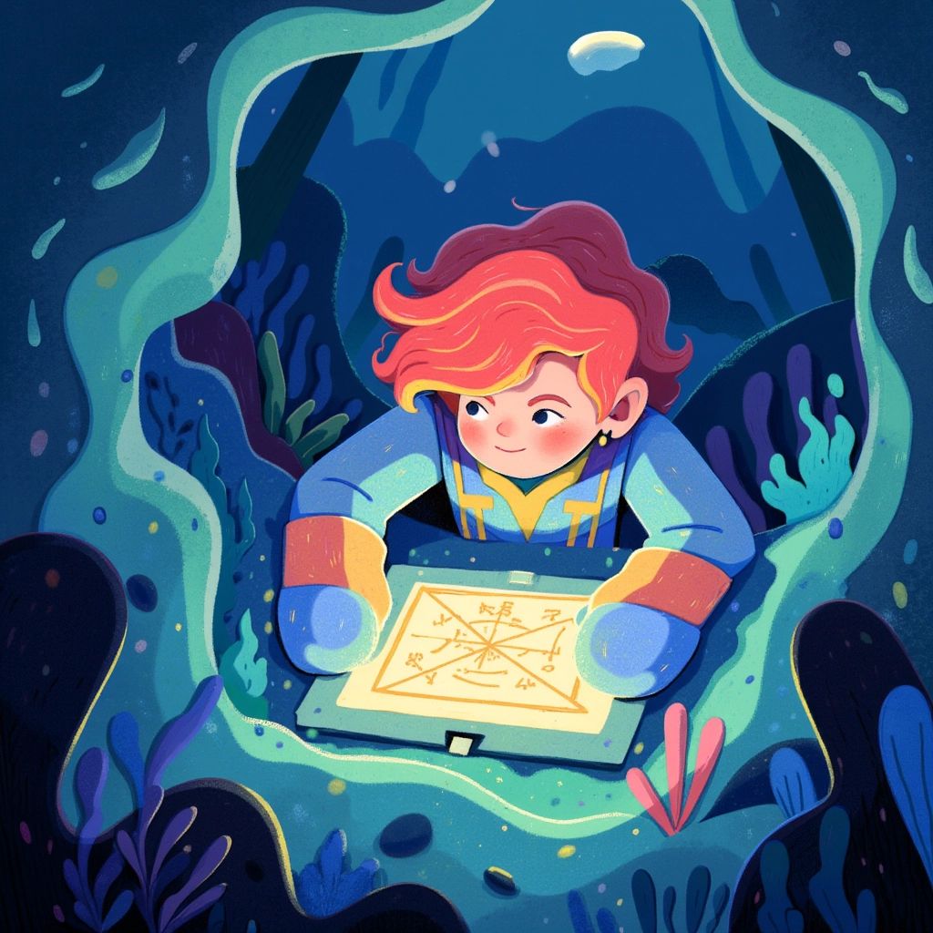 Guided by the map, [Linh](Y9N26MN5) ventured through secret tunnels and passed friendly sea creatures who pointed the way with gentle nudges and soft glows.