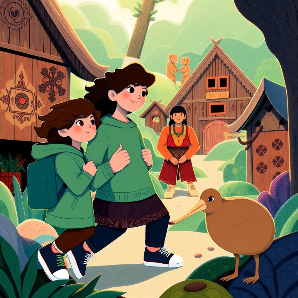 In a Maori village, [Liv](KRPWPQQV) learned about New Zealand’s culture. A friendly Maori woman showed her how to do the haka, a traditional dance. [Kiwi](Y3PV9KSQ) watched, clapping his wings. "This is a special place," [Liv](KRPWPQQV) said.