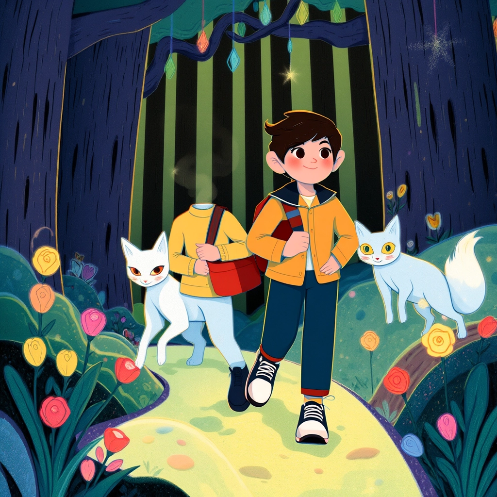 After a joyful day at school, [Izzy](3RKPVT4M) began his walk home. But as he ventured farther, he took a wrong turn into a shadowy path surrounded by thick trees. Suddenly, he realized he was lost.