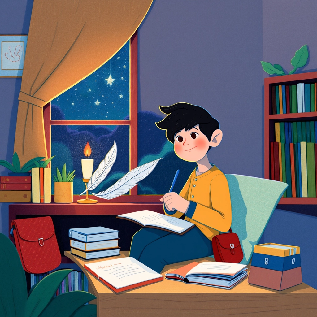 From that day on, [Izzy](3RKPVT4M)’s love for learning only grew stronger. He kept the silver feather as a reminder to never give up and to believe in the help of kind and magical friends.