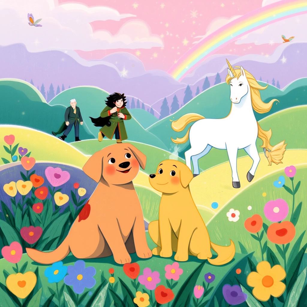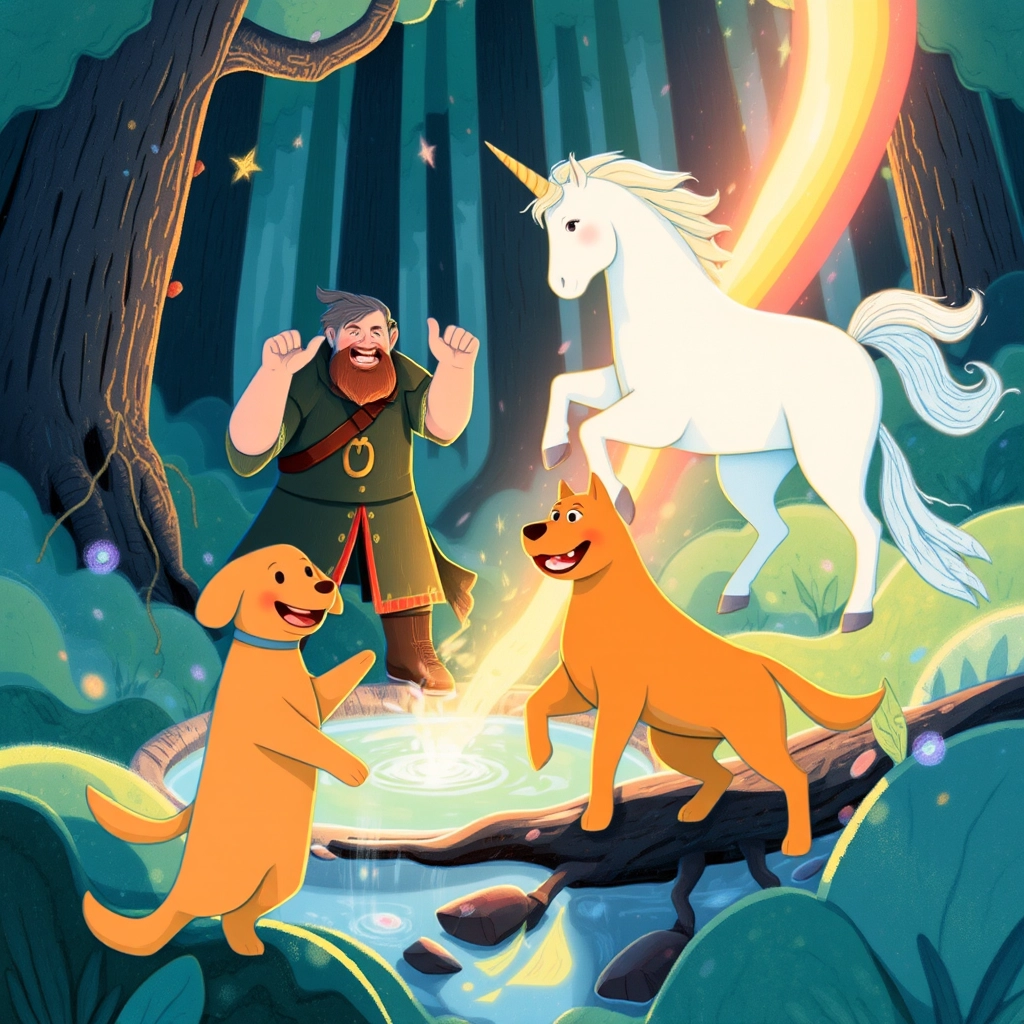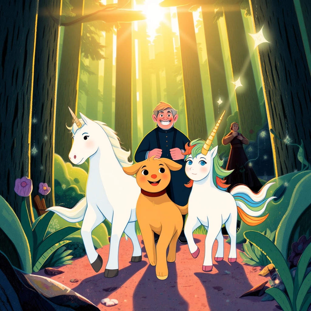 Once upon a time, a shiny white unicorn named [Starbeam](WB5TY5W5) and his best friend, [Jake](CJT9WYYT) the Labrador, were wandering the edge of the Enchanted Forest. The forest was full of sparkling leaves and swaying trees, but deep within, an eerie darkness loomed.