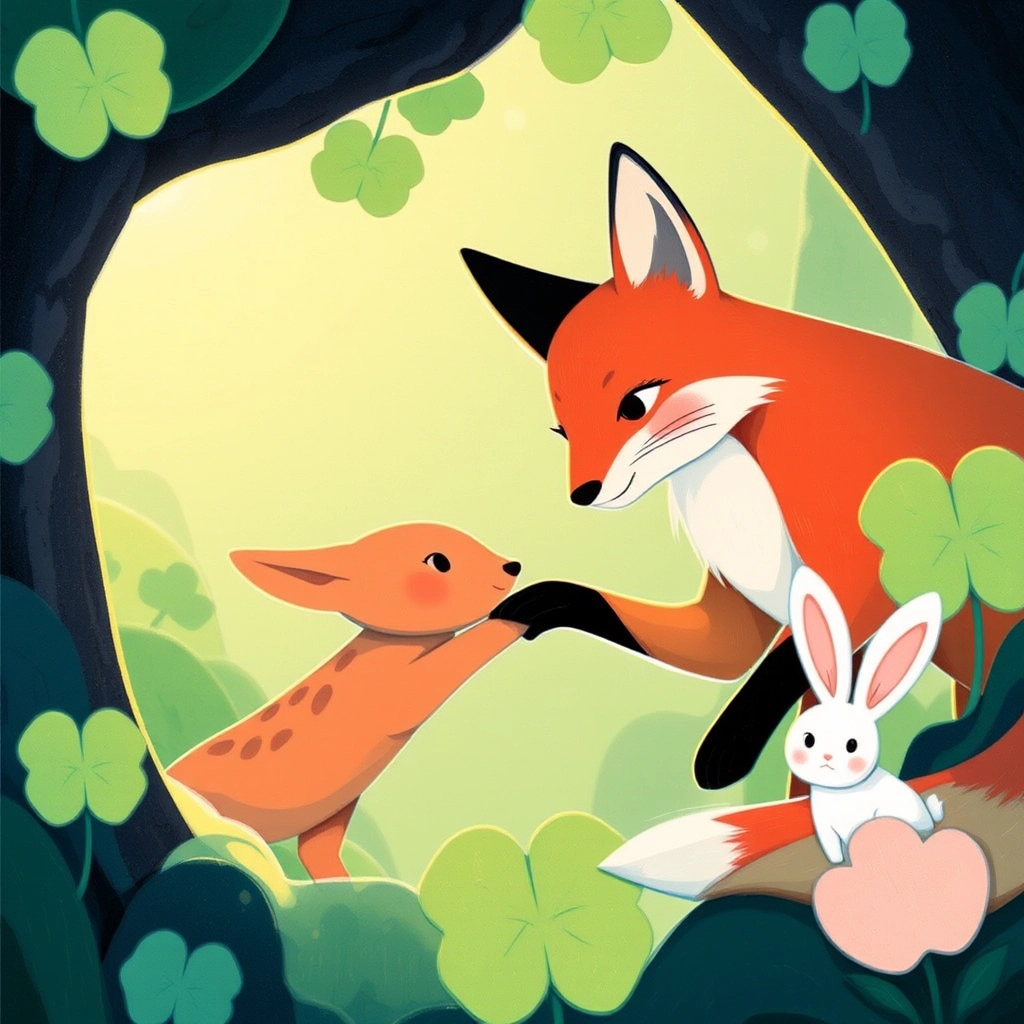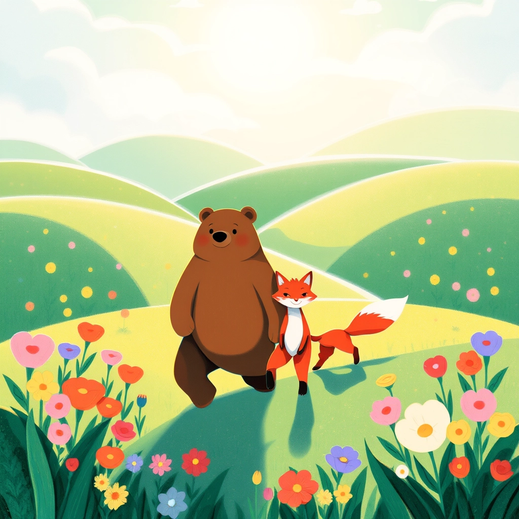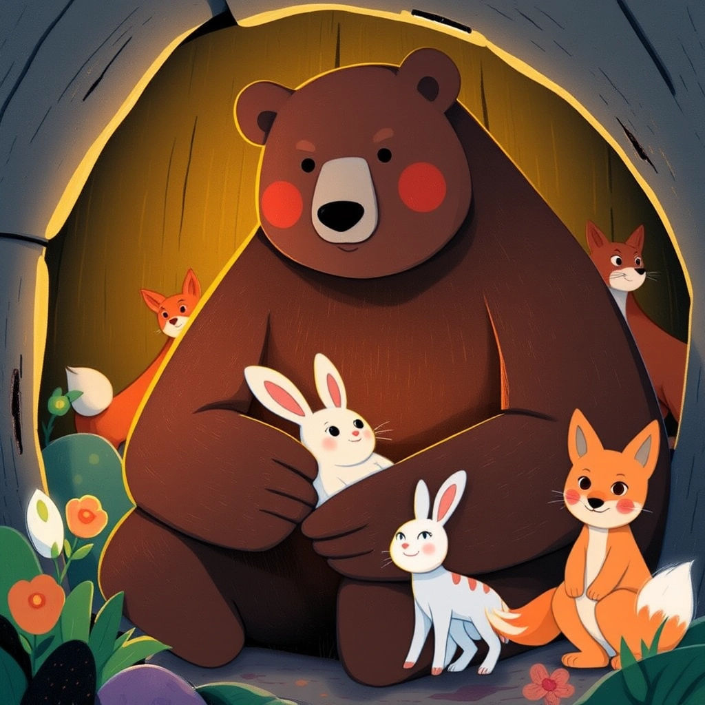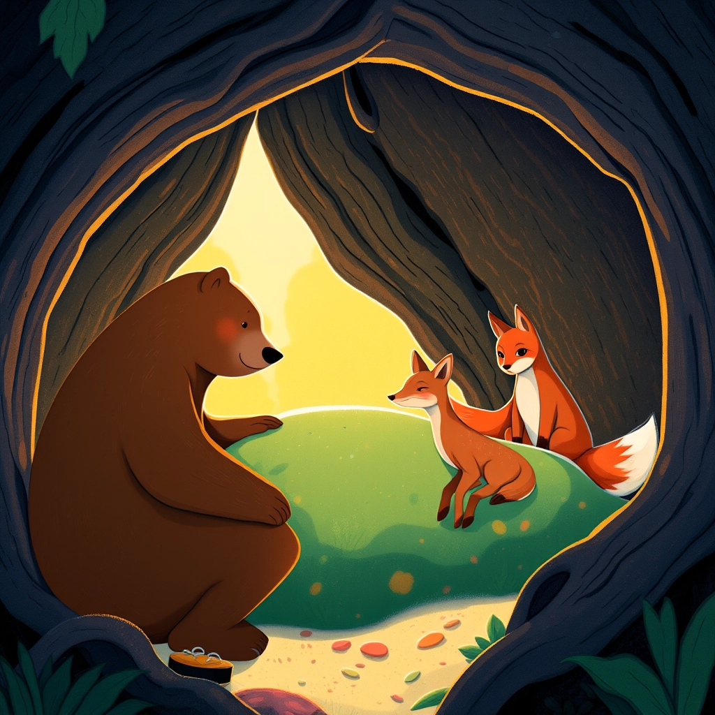 Deep in the golden woods of Harvest Hollow lived a gentle bear named [Papa](VP5CGJCN) and a clever fox named [Mama](CWFB9249). They had a cozy den filled with warmth, but something was missing.