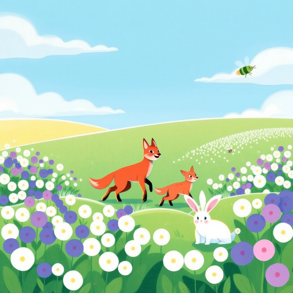 One spring afternoon, [Mama](CWFB9249) took [Ivy](BFM6374L) to the clover field to play. The flowers swayed, and bees buzzed gently.