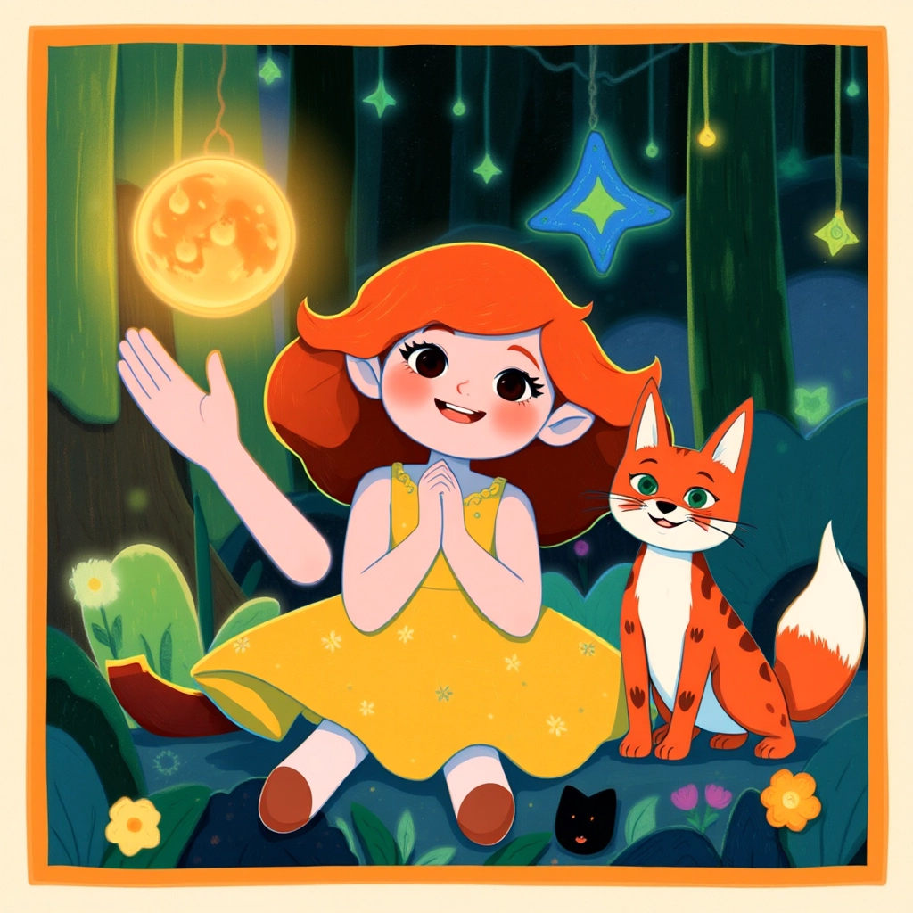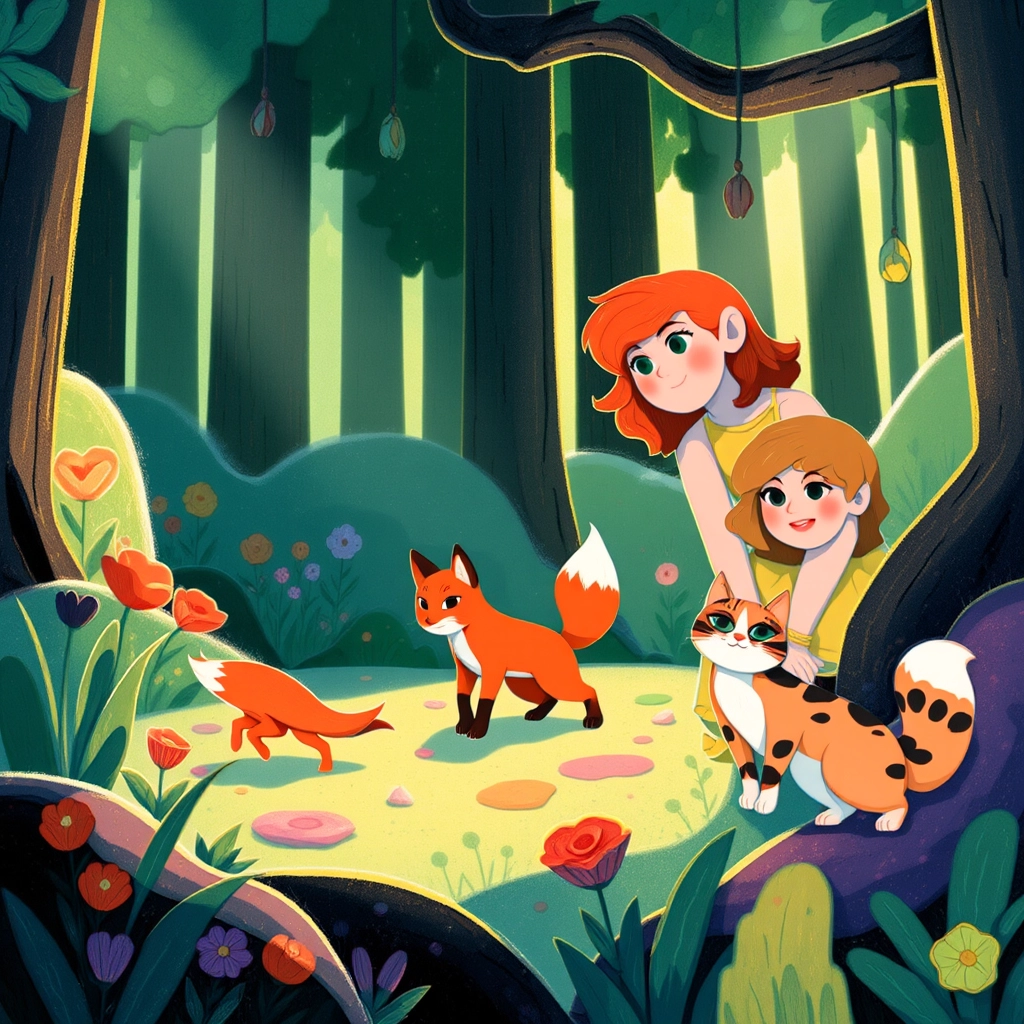 The magical woods were unlike anything they'd ever seen. The trees seemed to whisper, and the flowers glowed in every color imaginable. [Megsy](6ZRZBCW5) meowed softly as if she could sense the magic.