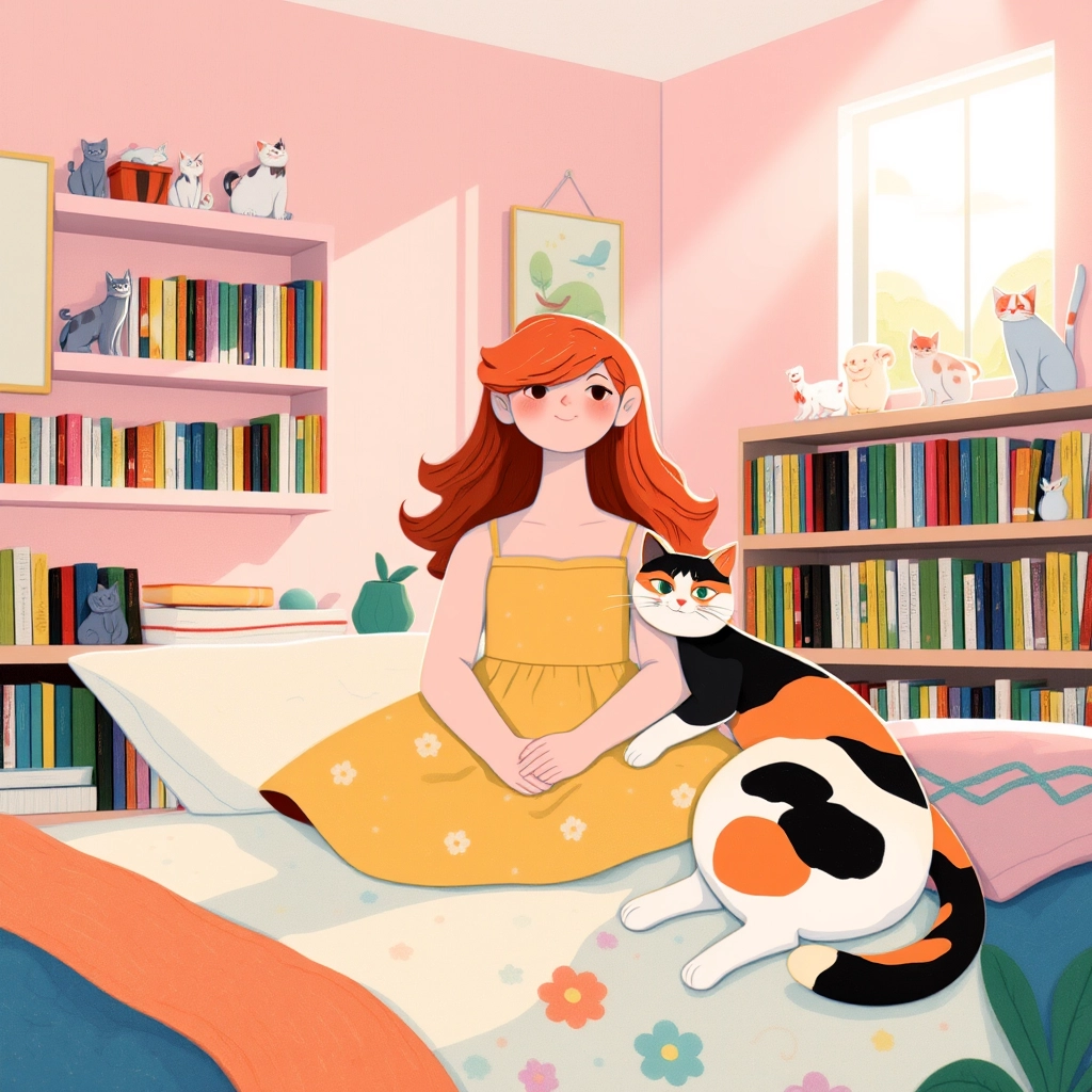 [Lucy](YGMZYJGK) was a curious little girl with auburn hair that shone like copper in the sun. Her best friend in the whole wide world was a calico cat named [Megsy](6ZRZBCW5), who followed her everywhere she went.