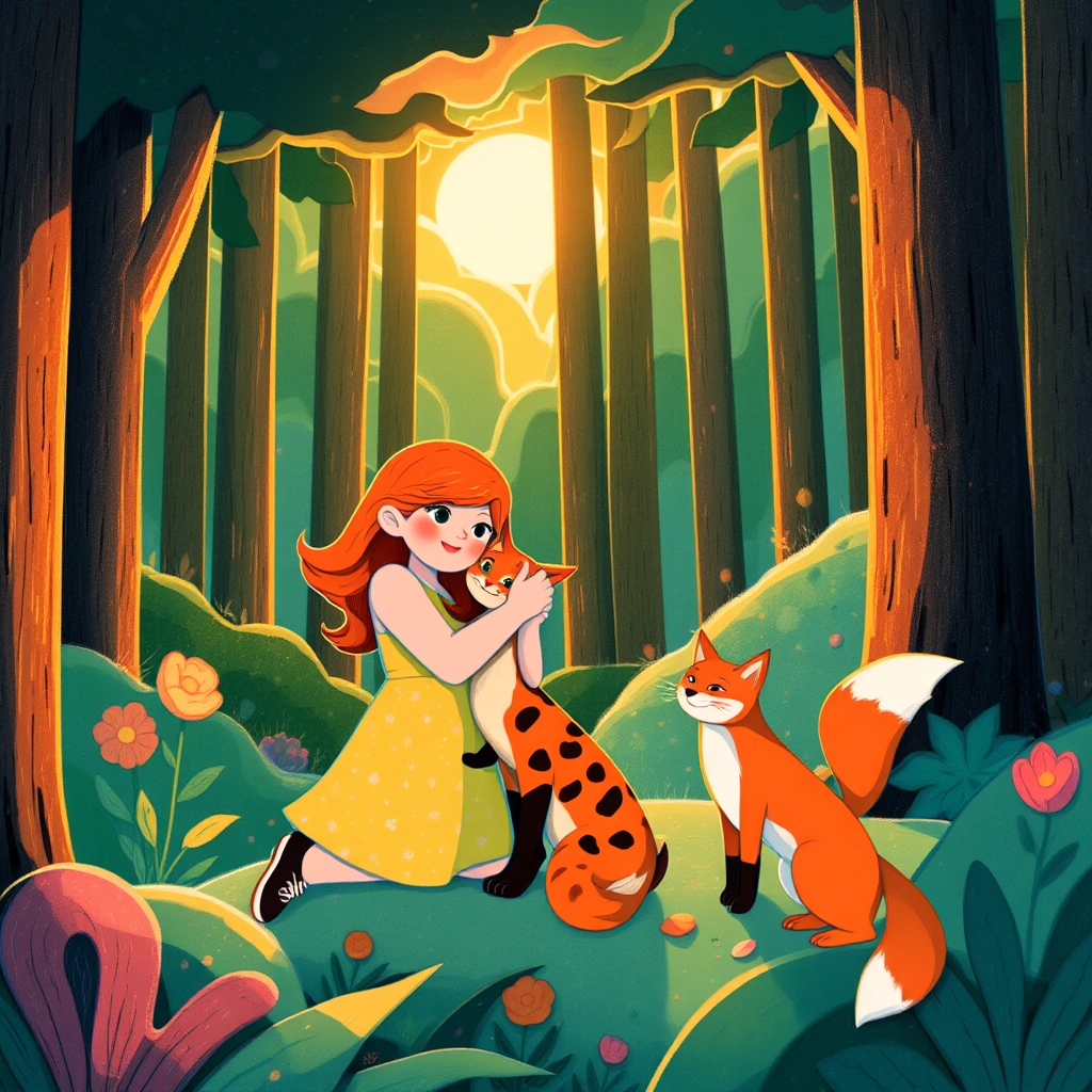 As the sun began to set, [Fenn](NC3GBQ74) led them back home. 'Thank you for sharing the magic with us,' [Lucy](YGMZYJGK) said, giving the fox a hug. 'Come visit anytime!' [Fenn](NC3GBQ74) replied.