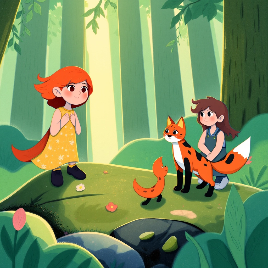 As they walked deeper into the forest, they met a little fox with fur as red as fire. 'Hello!' said [Lucy](YGMZYJGK). 'I'm [Lucy](YGMZYJGK), and this is [Megsy](6ZRZBCW5). Who are you?'