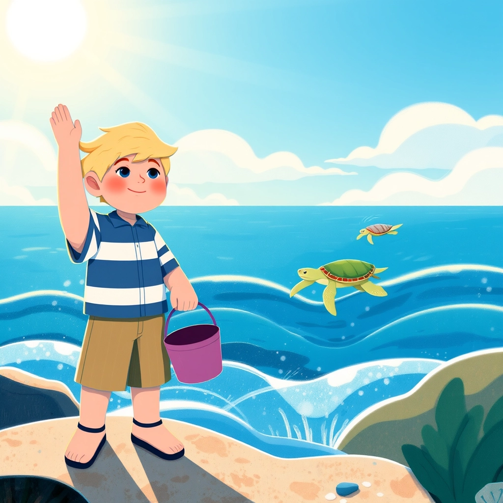 “Goodbye!” [Luke](5MXPRVTP) called. The turtle swam into the sparkling blue, its head bobbing once before it disappeared.