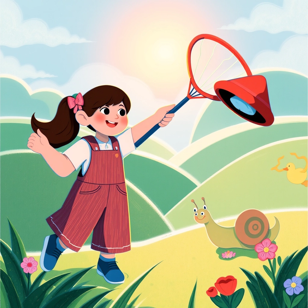 At last, [Lulu](L3XV7F7Z) caught it in a butterfly net. The hat wiggled once but said, 'Okay, I’m set.' She gave it a pat and whispered with grace, 'Please be a good hat and stay on my face!'