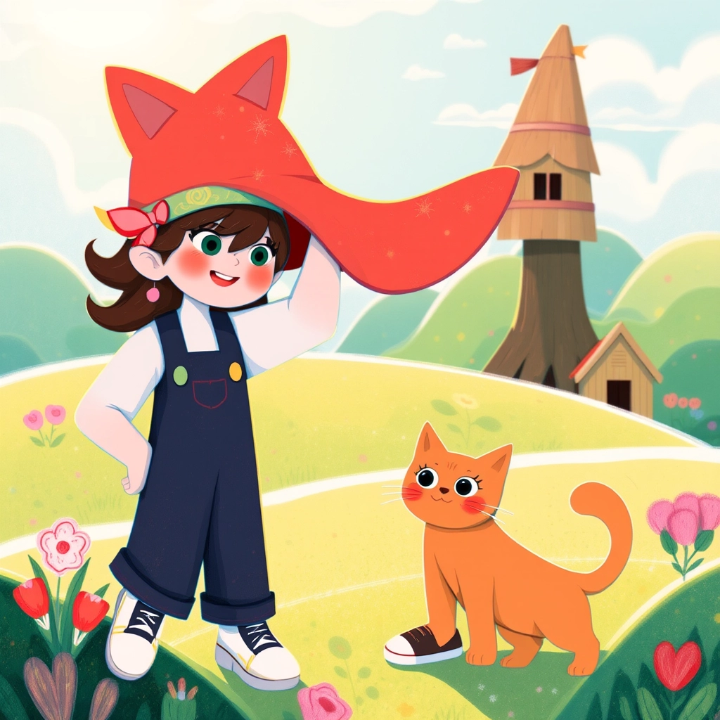 Once upon a giggle in a land not too far, lived a little girl named [Lulu](L3XV7F7Z) who loved her toy car. One sunny day, she found a big red hat. It looked very fancy and shaped like a cat!