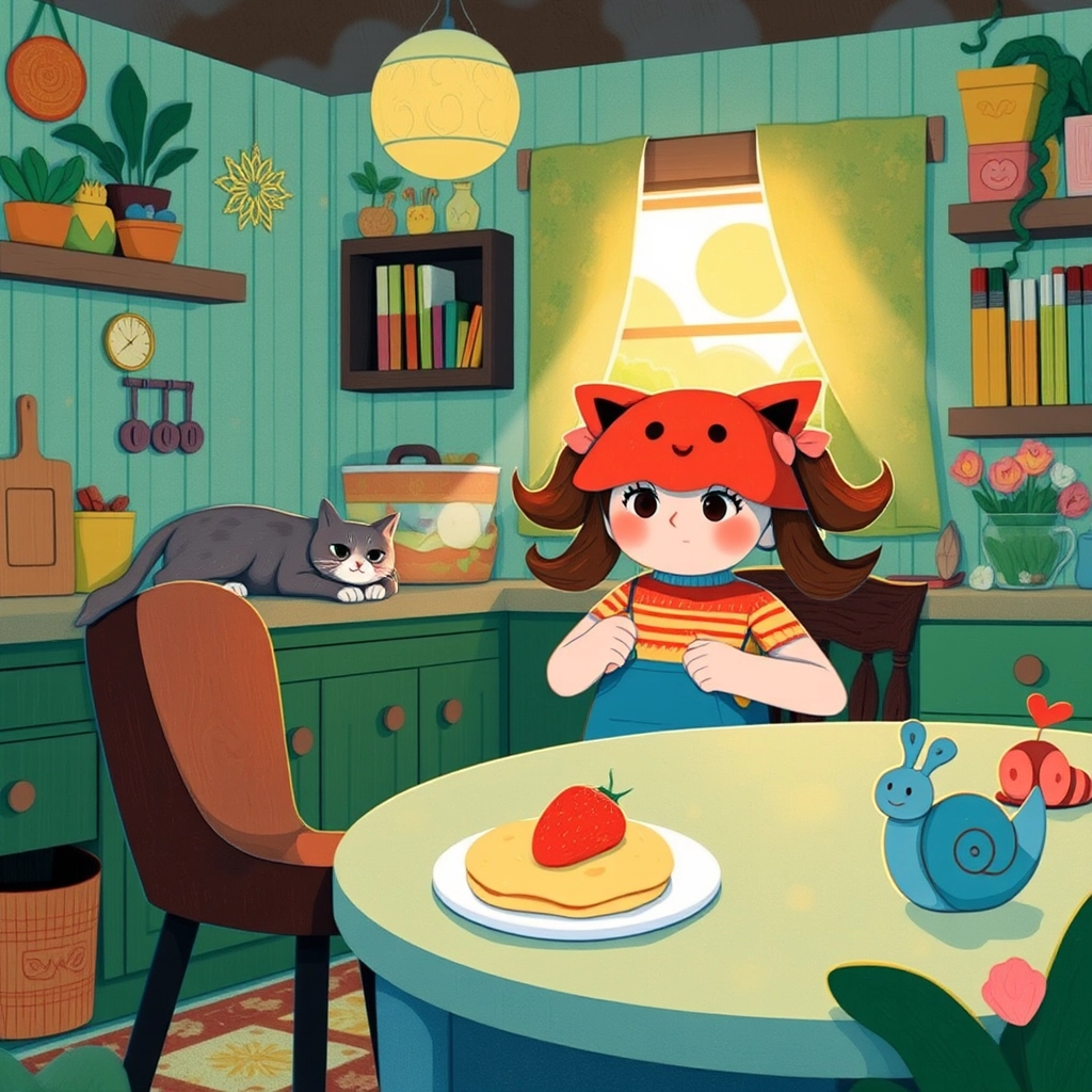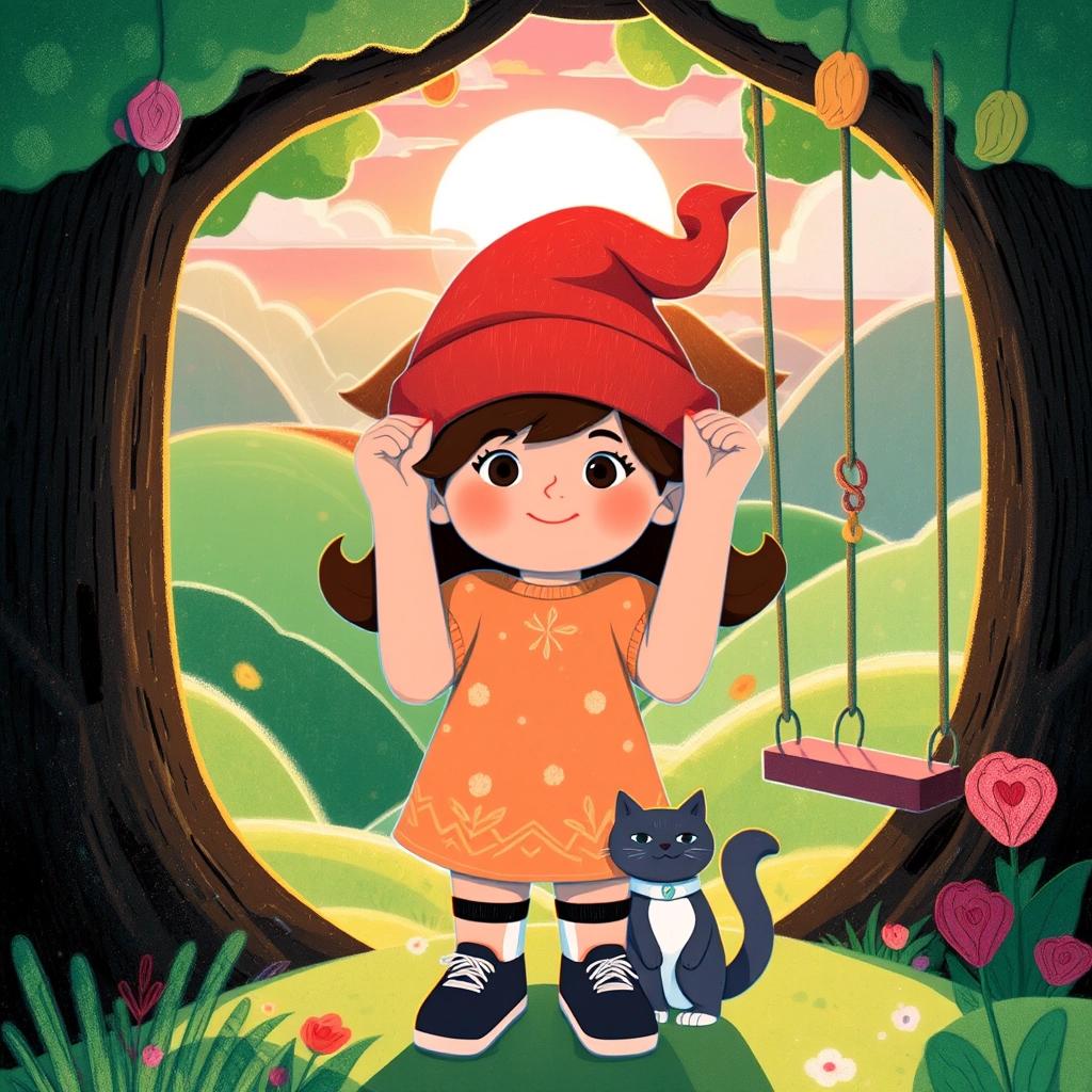 [Lulu](L3XV7F7Z) said, 'Oh wow! This hat is cool!' She wore it to breakfast and then off to school. But the hat had a secret, oh yes it did—It didn’t like sitting still on a kid!