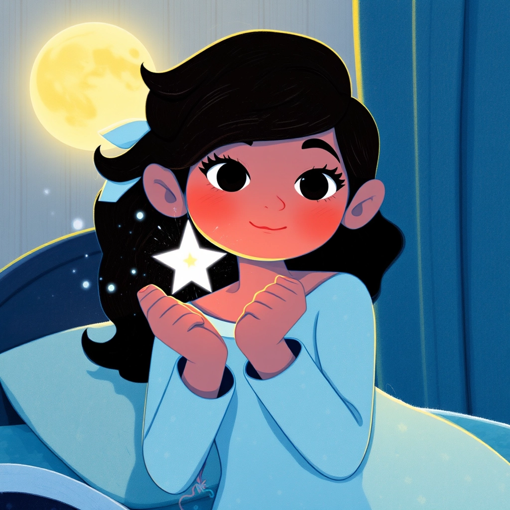 The star brought [Luna](SJVRMYPT) home. As she snuggled in bed, she smiled, knowing her wish was growing in the sky.