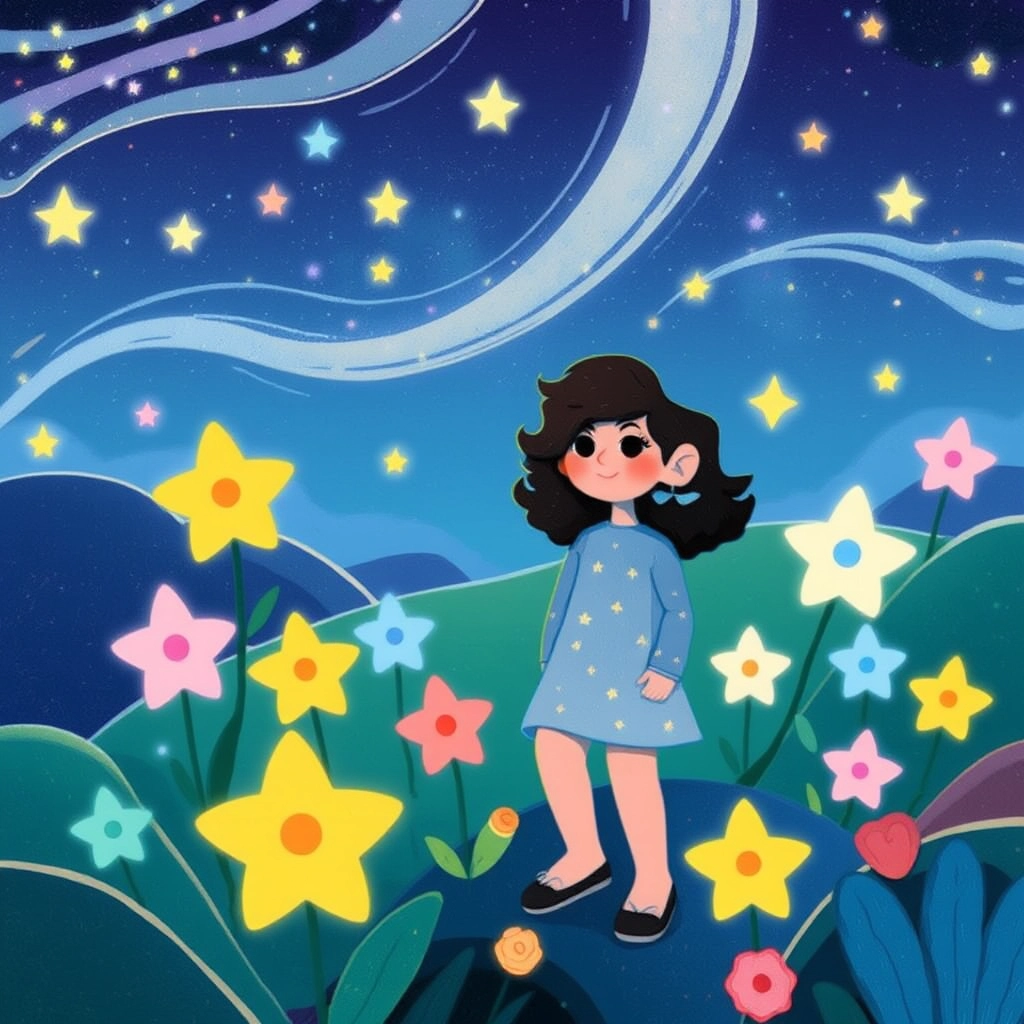 They landed in the Star Garden, where stars bloomed like flowers. Each one sparkled with dreams from Earth.