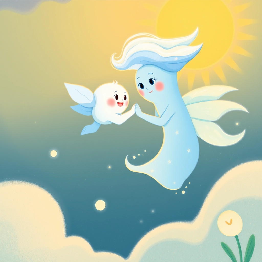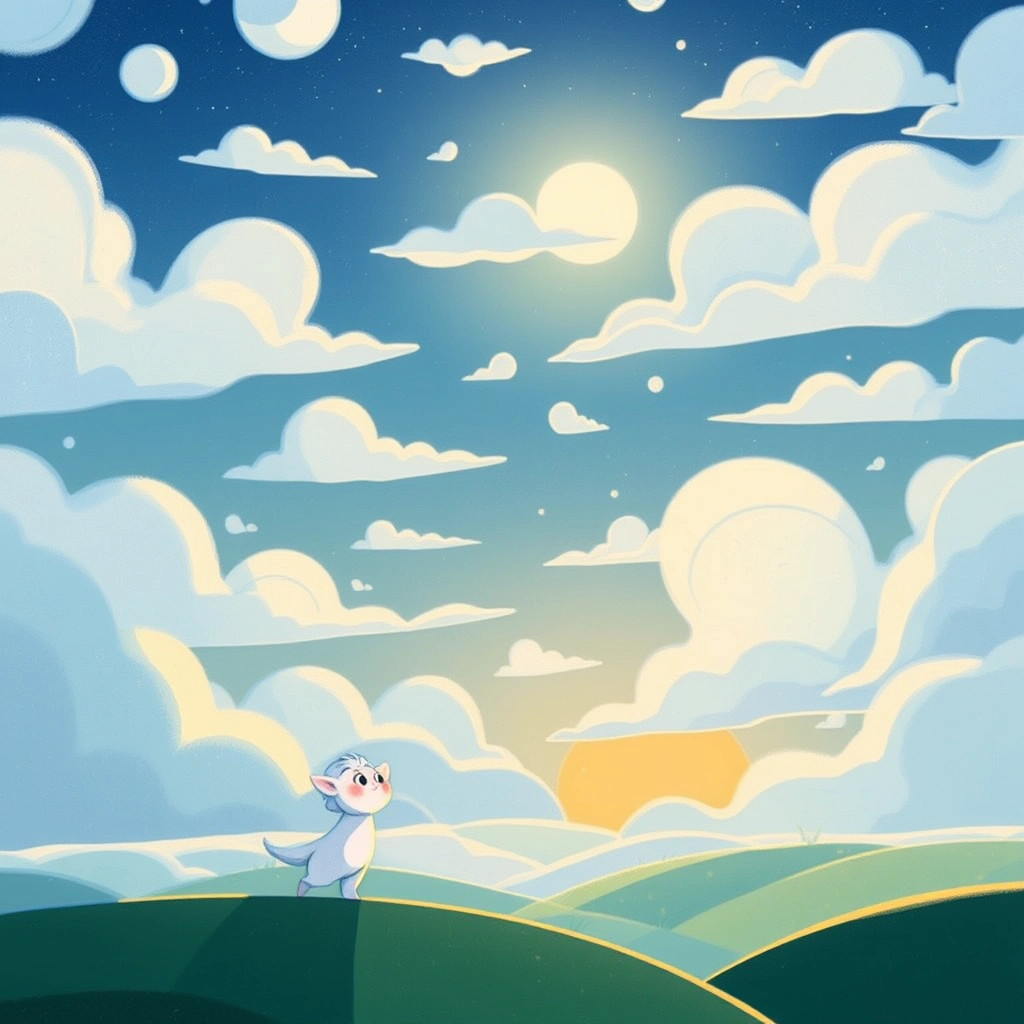 'I want to go high and far, like the biggest clouds,' said [Luna](RT6W7F6G). The sun chuckled, 'Little clouds can have special adventures too!'