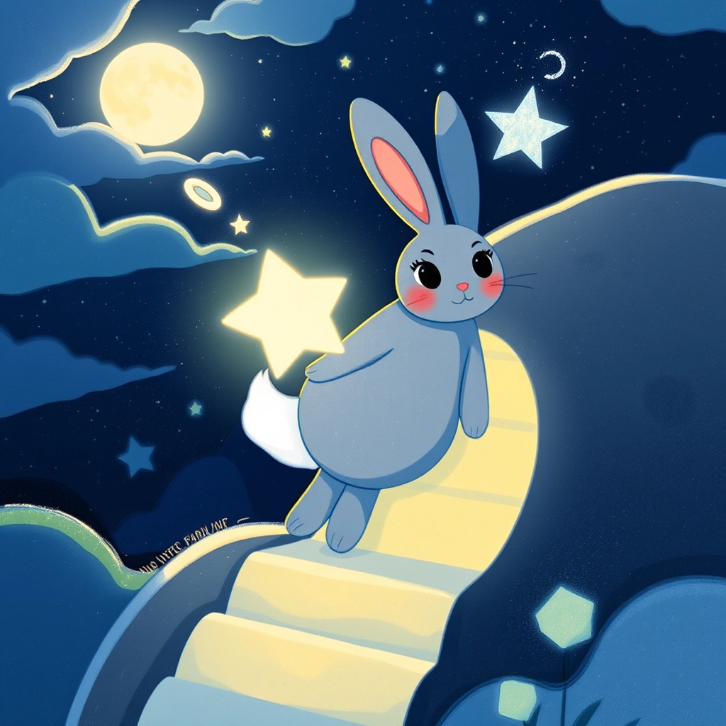[Luna](GXCRD62X) hopped up to a staircase made of clouds, each step as soft as a marshmallow and glowing gently in the moonlight.