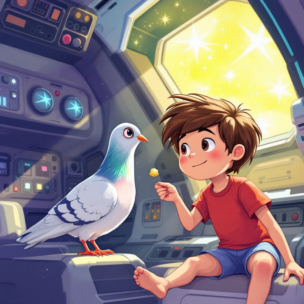 Suddenly, a curious pigeon fluttered by, hoping for crumbs. [Emory](LKHLQJZS) giggled, ‘He’s joined our space crew!’