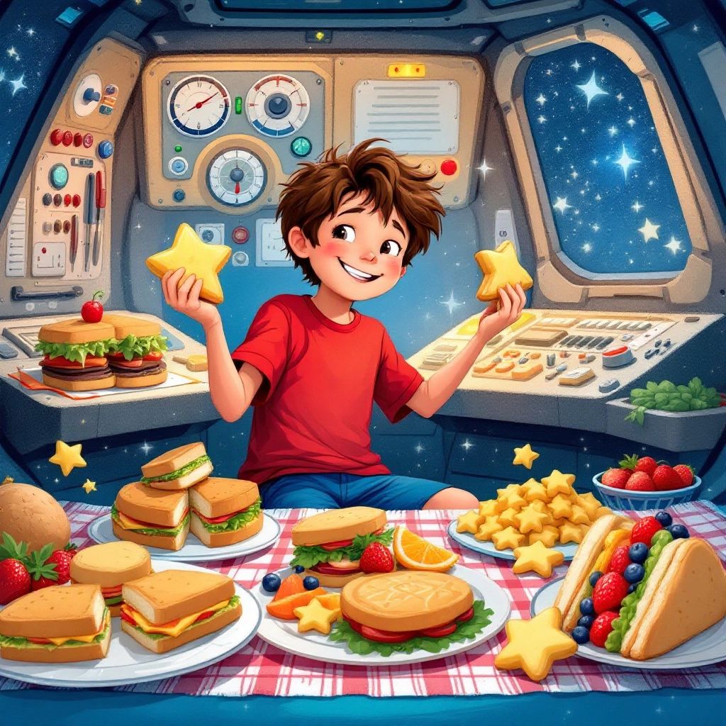They unpacked their lunch: sandwiches, fresh fruit, and a special surprise—galactic cookies from [Emory](LKHLQJZS)’s space adventures!
