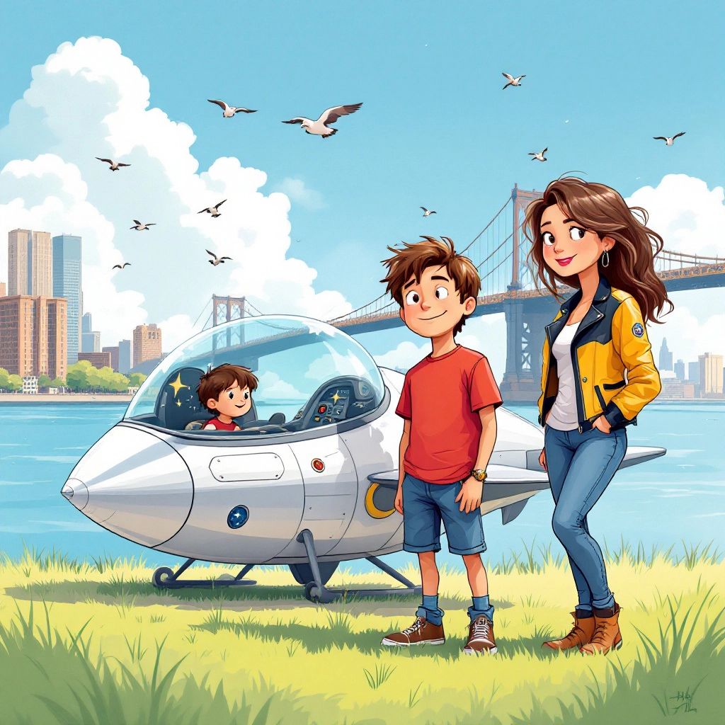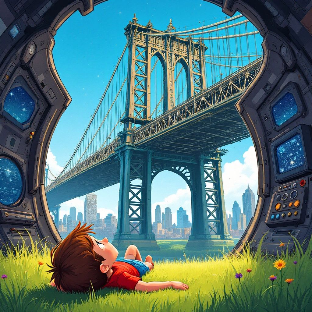 [Emory](LKHLQJZS) and [Lara](ZW6GDRPS) were on a grand adventure! Today, their spaceship landed in an unusual spot—right under the towering Brooklyn Bridge.