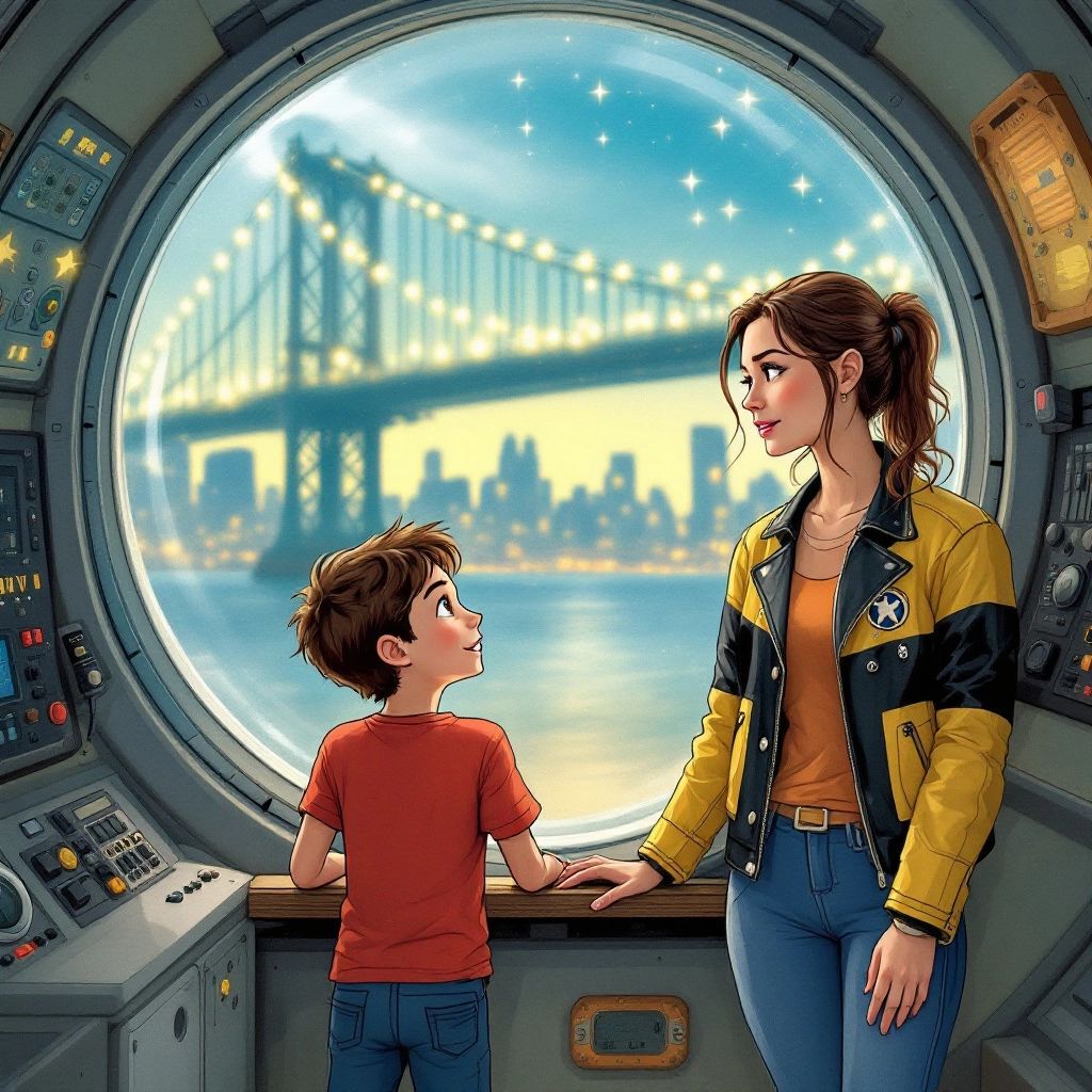 They climbed into their spaceship, waving goodbye to the bridge and the city below. ‘Till our next adventure!’ said [Emory](LKHLQJZS).