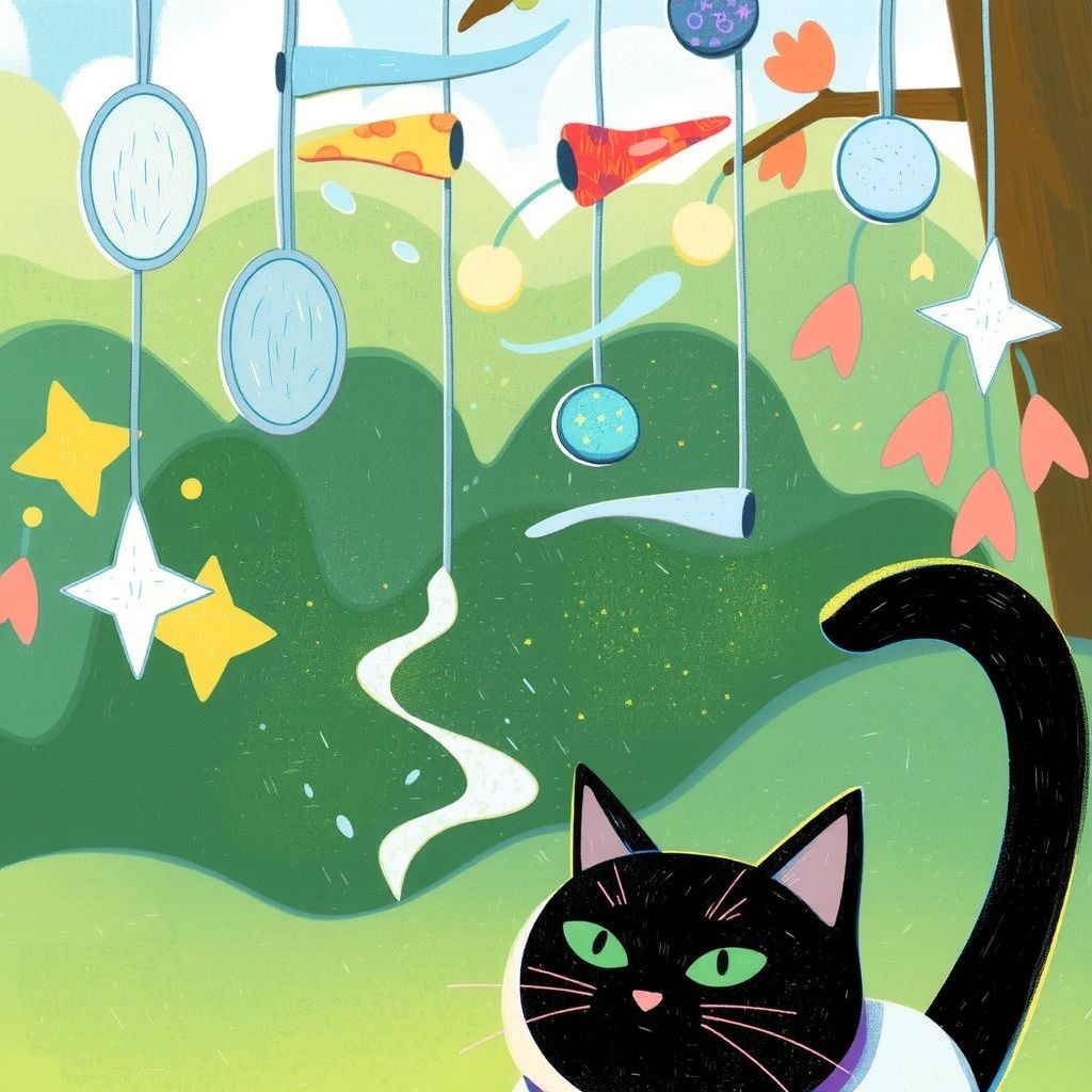 There [Magpie](FVX3D2D7) saw a wind chime made of the shiniest silver spoons and pebbles. It was the shiniest thing she had ever seen!