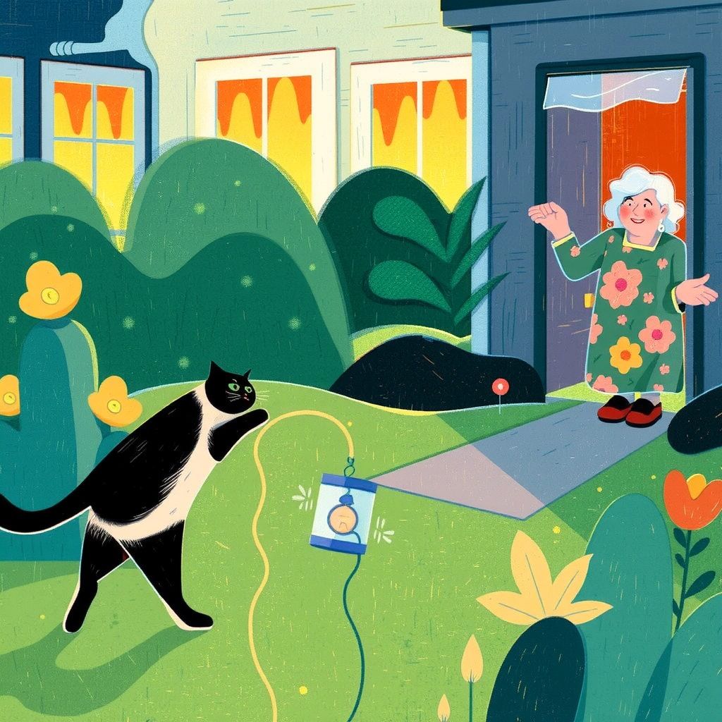 One day, as [Magpie](FVX3D2D7) trotted down the street, she heard the tinkling sound of bells. Curious, she followed the sound to [Mrs. Willow](3GX3XMT6)'s garden.