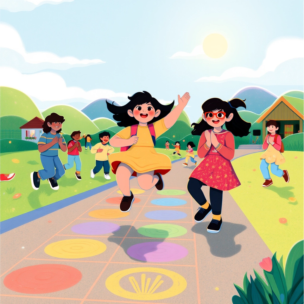 'Let's talk more during recess!' [Zara](H4TVZCJP) said with a grin. And after class, [Zara](H4TVZCJP) gathered her books and introduced [Mia](PQ6SZ22J) to a game of hopscotch that made all the kids join in.