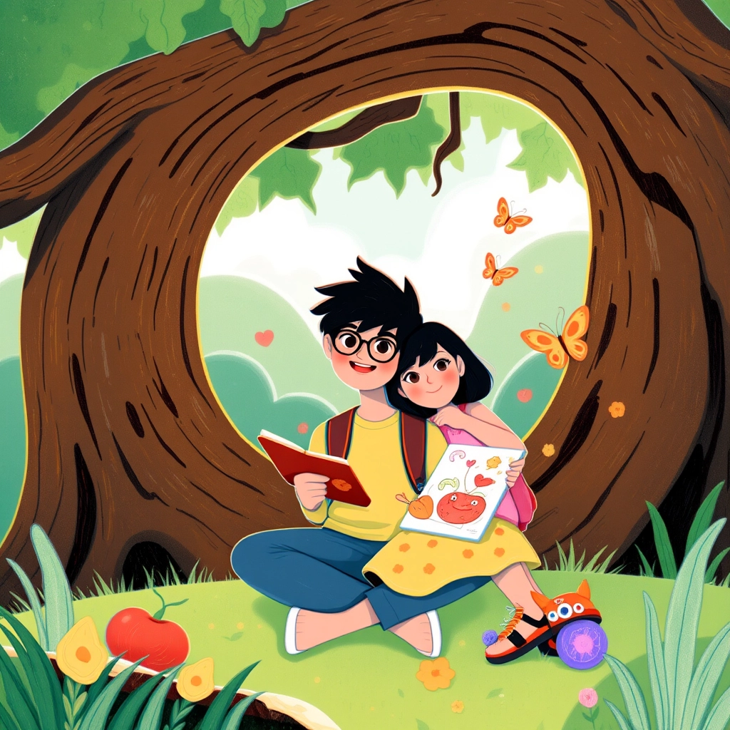 [Mia](PQ6SZ22J) noticed a boy sketching in his notebook under the shade of a big oak tree. Curious, she walked over and said, 'Hi, I'm [Mia](PQ6SZ22J)! What are you drawing?'