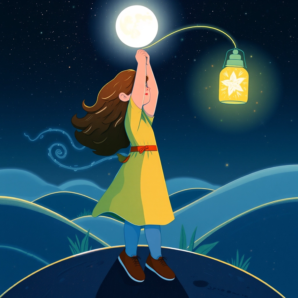 With every word [Maple](72VS5FKF) spoke, the moon glowed brighter. Bit by bit, it remembered its light. By the time she finished the story, the moon was shining as brightly as ever!