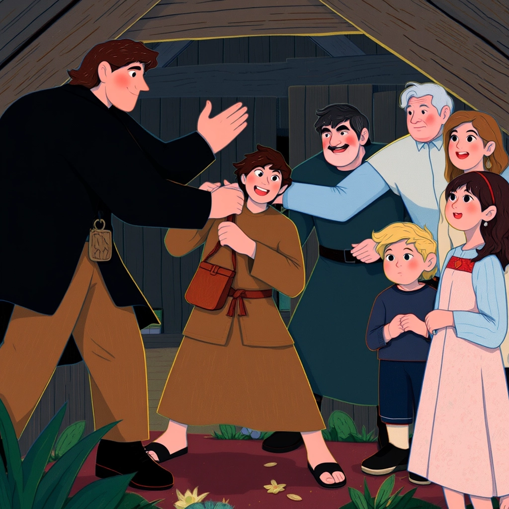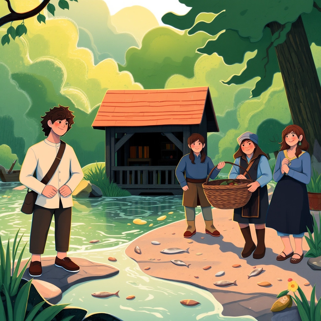 In a quiet hut by a shimmering silver river, [Samuel](PCFZNK93) the fisherman lived with his wife, [Clara](Q5KVSQG2), and their two children—[Marcus](LYDFN59M) and little [Mira](MXYZGJPZ). Every day, [Samuel](PCFZNK93) cast his net, bringing home fish to feed the family.