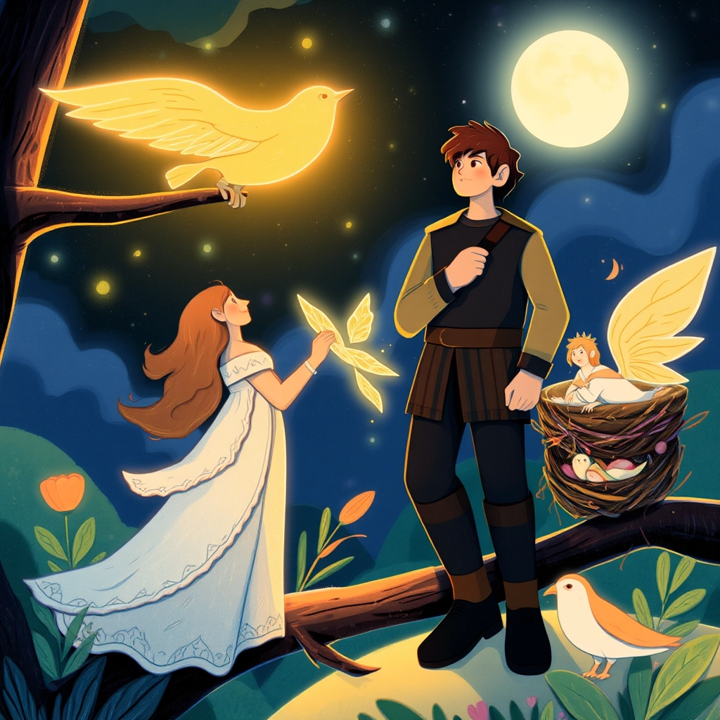 Carefully, [Marcus](LYDFN59M) climbed the nearest tree and returned the egg to its nest. From the branches above, a shimmering golden bird appeared.